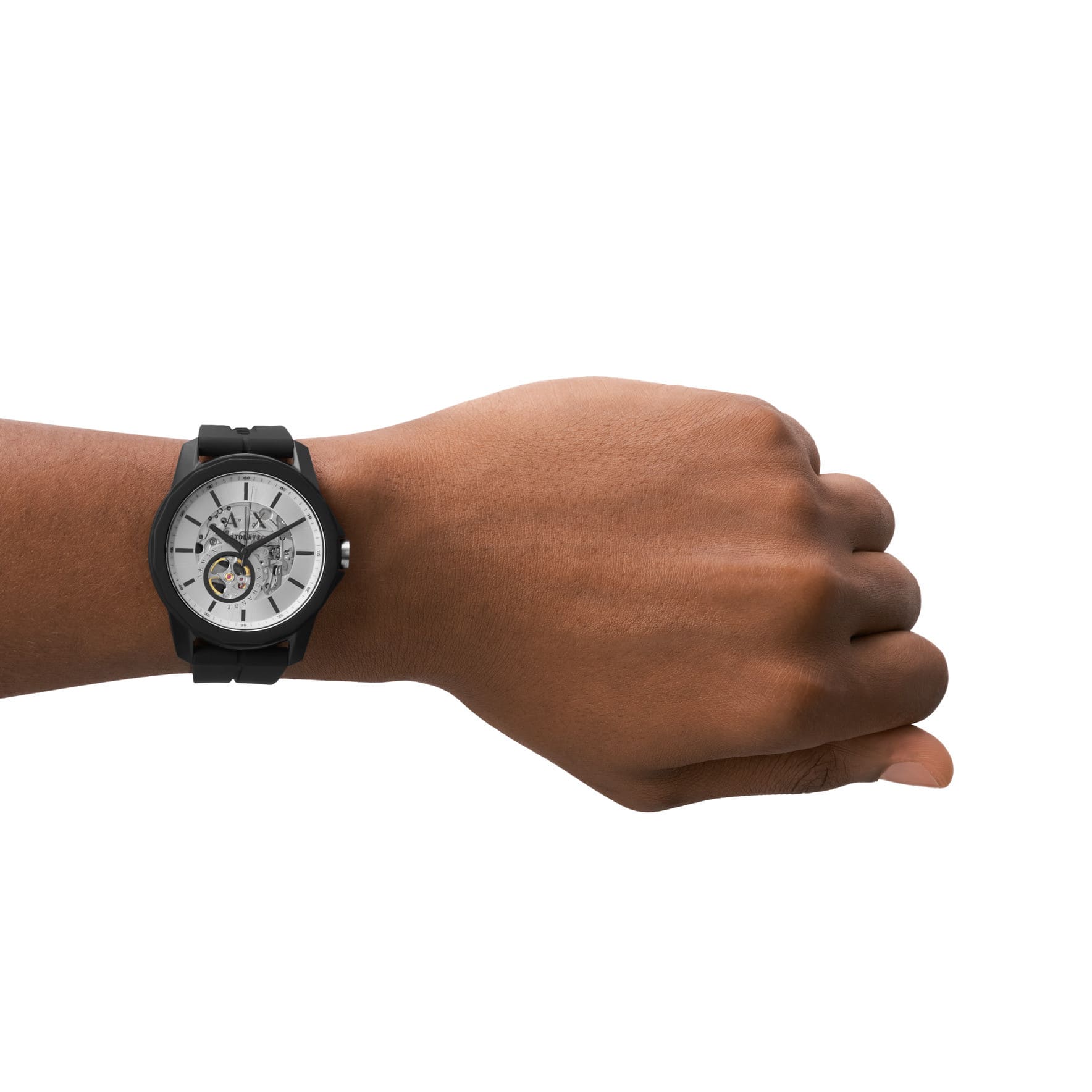 Мужские аналоговые механические часы с автоподзаводом. Основное достоинство часов с автоподзаводом состоит в том, что их не надо ежедневно заводить, т. к. в таких часах пружина заводного барабана получает энергию от вращающегося эксцентрика (ротора), который приходит в движение при любом изменении положения механизма. Если носить такие часы каждый день, подводить их вручную не нужно. Коллекция Banks Auto. Центральные часовая, минутная и секундная стрелки. Серебристый циферблат с часовыми метками в виде штрихов. Открытый баланс хода - (через окошко на циферблате виден механизм часов. Круглый корпус из полимерного пластика чёрного цвета. Диаметр корпуса 44 мм . Переводная головка с защитой. Устойчивое к мелким механическим повреждениям минеральное стекло. Прозрачная задняя крышка. Чёрный пластиковый ремешок с классической застежкой buckle. Ширина ремешка 22 мм. Водостойкость WR 50 (мытье рук, дождь).