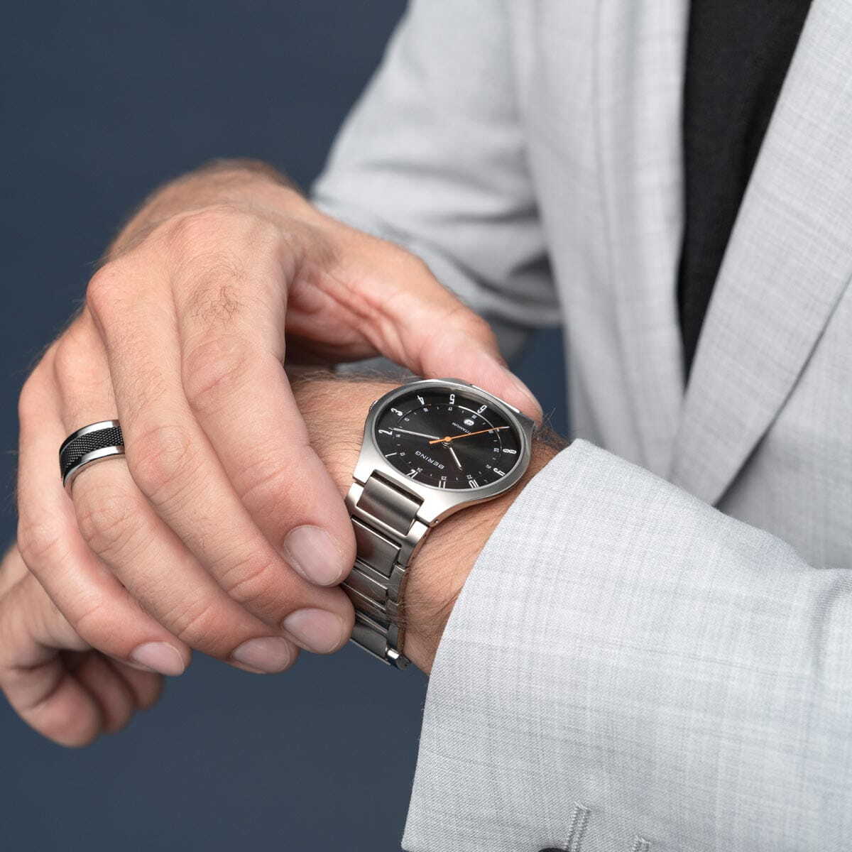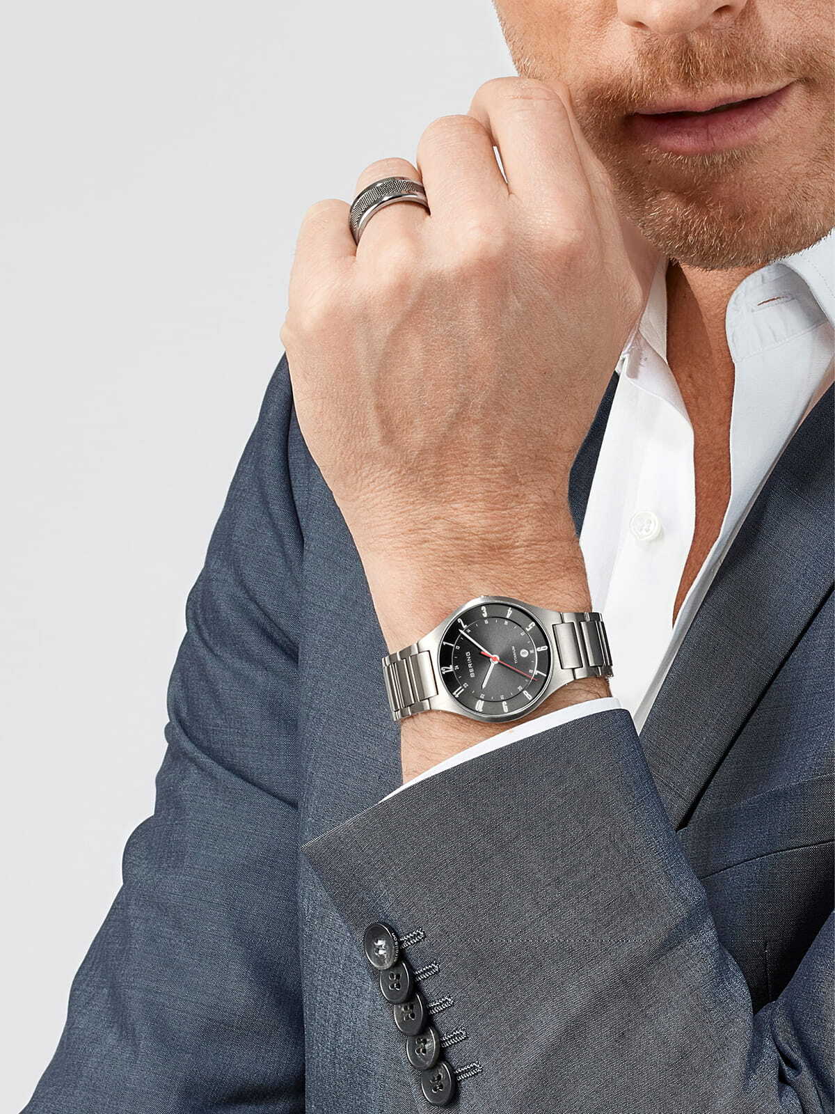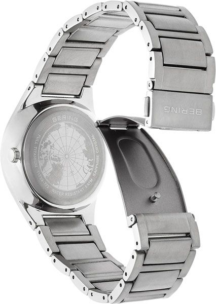 Мужские кварцевые наручные часы с аналоговым отображением времени. Серия Titanium. Центральные часовая, минутная и секундная стрелки. Серый циферблат с часовыми метками в виде арабских цифр. Стрелки и часовые метки с люминесцентным покрытием, которое светится в темноте после непродолжительного воздействия света. Индикация даты в положении 6 часов. 12-ти и 24-х часовой формат отображения времени (24-х часовая шкала по внутреннему краю циферблата). Круглый титановый корпус диаметром 39 мм, толщиной 7 мм. Устойчивое к возникновению мелких царапин плоское сапфировое стекло. Титановый браслет с раскладывающейся застежкой. Ширина браслета 20 мм. Водонепроницаемость WR 50 (мытьё рук, дождь).
