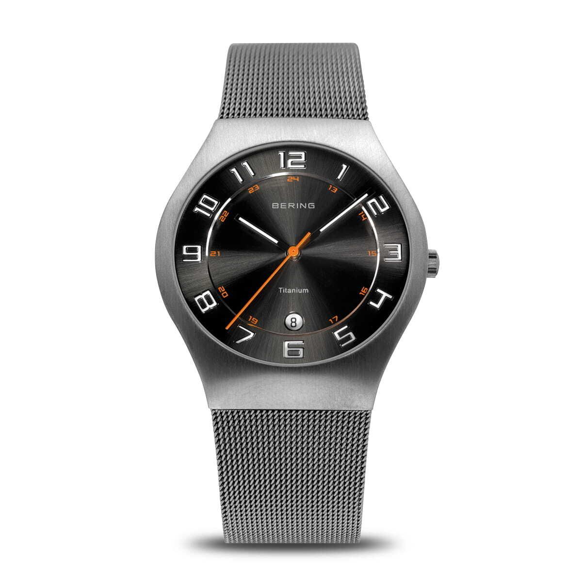 Мужские кварцевые наручные часы с аналоговым отображением времени. Сверхлегкие и элегантные. Коллекция Titanium. Титан сверхлёгкий и гипоаллергенный материал, идеально подходит для повседневного комфорта, даже для чувствительной кожи. Центральные часовая, минутная и секундная стрелки. Стрелки с люминесцентным покрытием, которое светится в темноте после непродолжительного воздействия света. Чёрный циферблат с часовыми метками в виде арабских цифр выполнен по технологии Sunray (солнечные лучи). Индикация даты в положении 6 часов. 24-х часовая шкала на циферблате. Круглый титановый матовый корпус диаметром 37 мм, толщиной 7 мм. Устойчивое к возникновению мелких царапин плоское сапфировое стекло. Титановый браслет миланского плетения с раскладывающейся застёжкой. Застёжка с предохранительной защёлкой. Ширина браслета 21мм, длина браслета 207 мм Водонепроницаемость WR50 (мытьё рук, дождь).