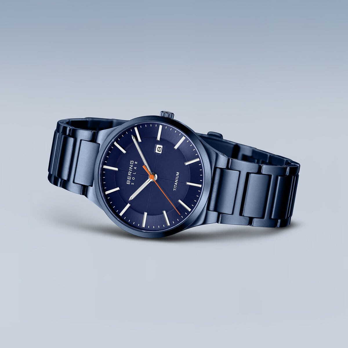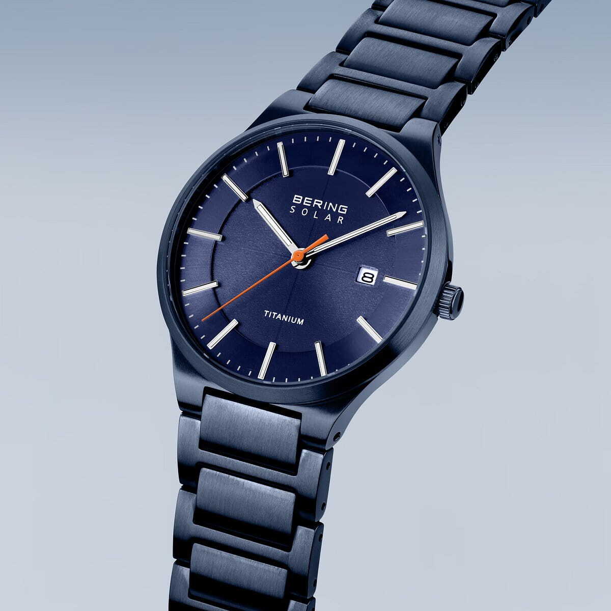 Мужские кварцевые аналоговые наручные часы на солнечной батарее. Коллекция Slim Solar Titanium. Механизм Epson VS37A11. Центральные часовая, минутная и секундная стрелки. Синий циферблат с часовыми метками в виде штрихов. Стрелки и часовые метки с люминесцентным покрытием, которое светится в темноте после непродолжительного воздействия света. Окошко даты в позиции 3 часов. Питание от солнечной энергии (не требуется менять батарейку) - источником питания служит светочувствительная панель и аккумулятор, заряжаемый при попадании солнечного света на циферблат часов. Запас хода при полностью заряженной батарее от 6 до 12 месяцев. Круглый титановый корпус с сатинажем и синим IP покрытием. Диаметр корпуса корпуса 39 мм, толщина 9 мм. Устойчивое к возникновению мелких царапин плоское сапфировое стекло. Титановый браслет с синим покрытием, раскладывающаяся застежка. Ширина браслета 21 мм, длина браслета 170 мм. Завинчивающаяся задняя крышка. Водонепроницаемость WR100 (часы подходят для плавания с маской и трубкой, обычного плавания).