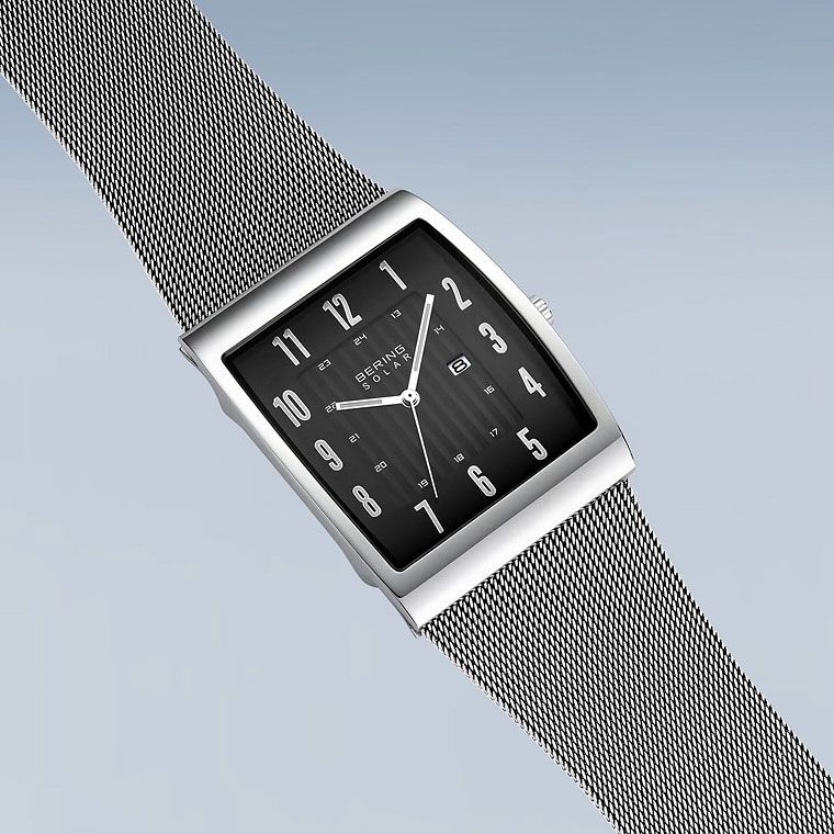 Мужские кварцевые аналоговые наручные часы на солнечной батарее. Коллекция Slim Solar. Механизм Epson VS22B11. Центральные часовая, минутная и секундная стрелки. Чёрный циферблат с часовыми метками в виде арабских цифр. Стрелки и часовые метки с люминесцентным покрытием, которое светится в темноте после непродолжительного воздействия света. Окошко даты в позиции 3 часов. 24-х часовая шкала на циферблате. Питание от солнечной энергии (не нужно менять батарейки) - источником питания служит светочувствительная панель и аккумулятор, заряжаемый при попадании солнечного света на циферблат часов. Запас хода при полностью заряженной батарее от 6 до 12 месяцев. Прямоугольный полированный стальной корпус. Размер корпуса 33 мм на 44 мм, толщина 8 мм. Устойчивое к возникновению мелких царапин выпуклое сапфировое стекло. Стальной браслет миланского плетения, застежка с фиксатором. Ширина браслета 29 мм, длина браслета 200 мм. Водонепроницаемость WR30 (защита от брызг).