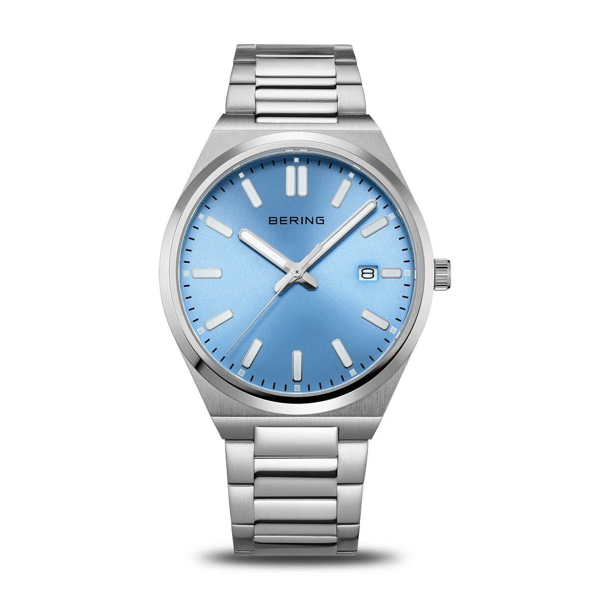 Мужские кварцевые наручные часы с аналоговым отображением времени. Серия Classic Collection. Центральные часовая, минутная и секундная стрелки. Голубой циферблат с часовыми метками в виде штрихов. Стрелки и метки с люминесцентным покрытием, которое светится в темноте после непродолжительного воздействия света. Индикация даты в положении 3 часов. Круглый стальной полированный корпус. Диаметр корпуса 40 мм, толщина 6 мм. Устойчивое к возникновению мелких царапин плоское сапфировое стекло. Стальной браслет с раскладывающейся застёжкой. Ширина браслета 18 мм, длина браслета 166 мм. Водонепроницаемость WR50 (мытьё рук, дождь).