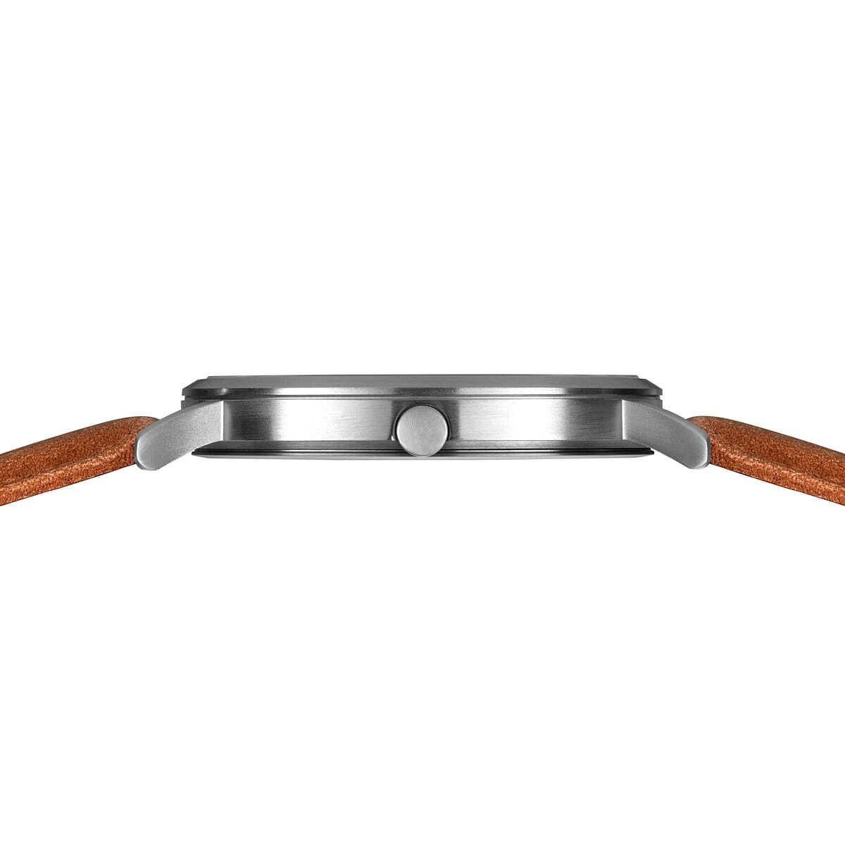 Мужские кварцевые наручные часы с аналоговым отображением времени. Сверхлегкие и элегантные. Коллекция Titanium. Титан сверхлёгкий и гипоаллергенный материал, идеально подходит для повседневного комфорта, даже для чувствительной кожи. Механизм Miyota GM12. Центральные часовая, минутная и секундная стрелки. Стрелки с люминесцентным покрытием, которое светится в темноте после непродолжительного воздействия света. Синийциферблат с часовыми метками в виде арабских цифр. Индикация даты в положении 3 часов. Круглый титановый матовый корпус диаметром 40 мм, толщиной 7 мм. Устойчивое к возникновению мелких царапин плоское сапфировое стекло. Коричневый кожаный ремешок с классической застёжкой buckle. Ширина ремешка 20 мм, длина 190 мм. Водонепроницаемость WR50 (мытьё рук, дождь).