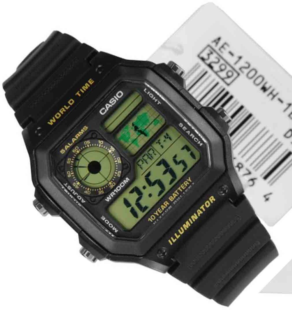 Мужские кварцевые электронные наручные часы. Коллекция Standard Digital. Циферблат подсвечивается светодиодом c функцией послесвечения. Секундомер с точностью показаний 1/100 секунды и временем измерения 24 ч. Режимы измерения: прошедшее время, промежуточное время, два финишных результата. Таймер обратного отсчета от 1c до 24ч. независимых будильников, сигнал начала часа. Включение/выключение звука кнопок (Mute). Автоматический календарь до 2099 года. 12/24-х часовой формат отображения времени. Мировое время - 48 городов (31 часовой пояс), всемирное координированное время (UTC), установка летнего/стандартное времени, переключение между текущим и мировым временем. Режим WorldTime — показания текущего времени в 4-х зафиксированных городах. Прямоугольный корпус из полимерного пластика чёрного цвета. Размеры корпуса 45 мм на 42,1 мм, толщина 12,5 мм. Пластиковое стекло. Чёрный пластиковый ремешок с классической застёжкой buckle. Батарея рассчитана на 10 лет. Водонепроницаемость 100 WR (часы подходят для плавания с маской, трубкой и обычного плавания). Вес около 39 г