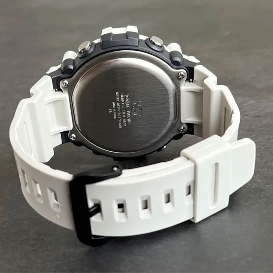 Мужские кварцевые электронные наручные часы. Светодиодная подсветка. Будильник с пятью многофункциональными звуковыми сигналами. Функция повтора будильника. Секундомер с точностью показаний 1/100 секунды и пределом измерения 24 часа. Таймер на 24 часа (с автоматическим повтором). Автоматический календарь. Включение/выключение звука кнопок. 12/24-х часовой формат времени. Чёрный ЖК- дисплей. Корпус выполнен из полимерного пластика. Размер корпуса составляет 54,4 мм на 51,2 мм, толщина15,7 мм. Пластиковый ремешок со стандартной застежкой. Пластиковое стекло. Водостойкость WR 100 (плавание без погружения). Вес примерно 57 г.