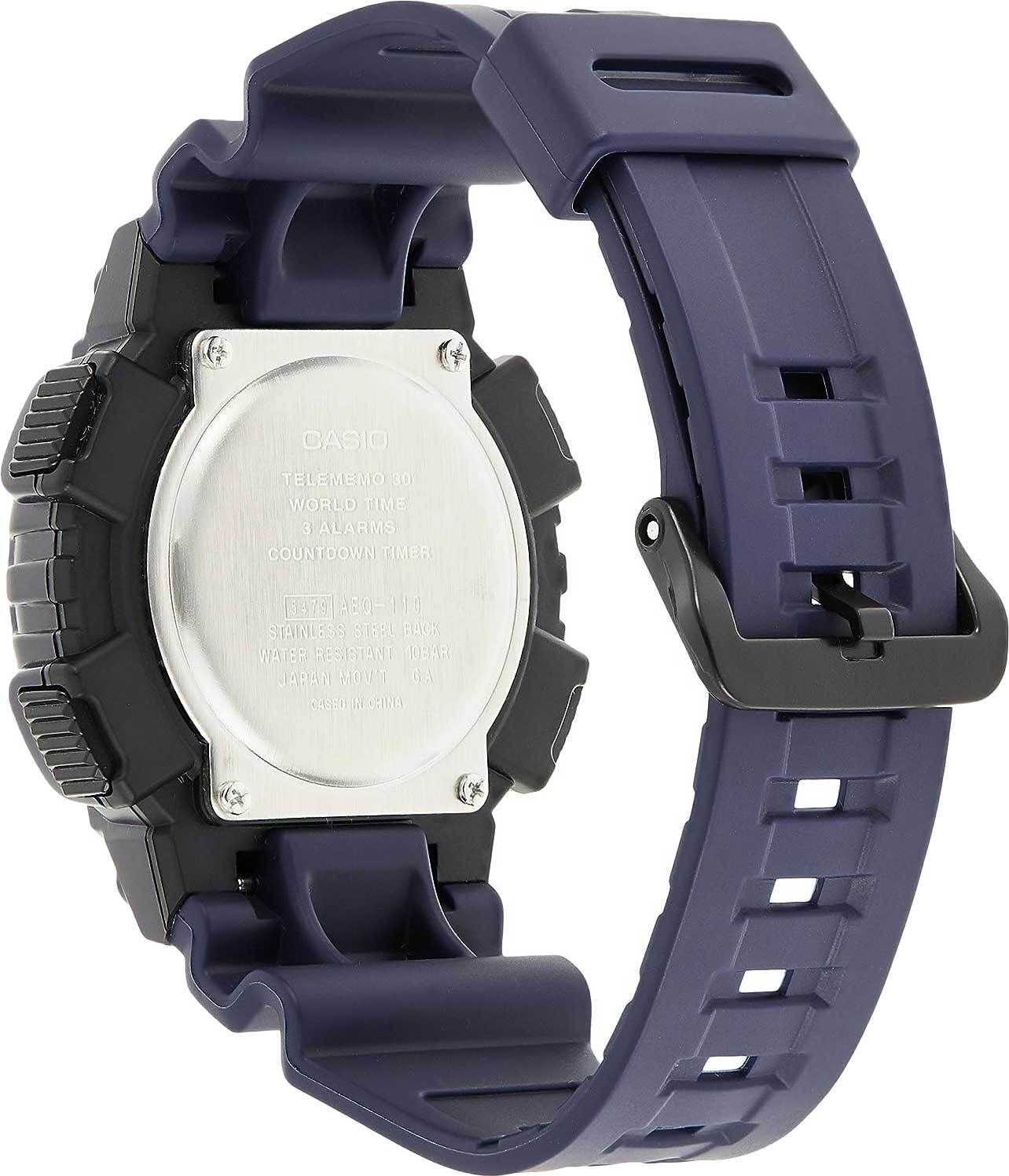 Сплит-хронограф. Кварцевый механизм. Водозащита WR 100.Таймер обратного отсчета от 1мин до 24ч. Мировое время – 30 городов (29 часовых поясов). Функция включения/отключения летнего времени. 12/24х часовой формат времени. Секундомер с точностью показаний 1/100с и временем измерения 24ч. Светонакопительное покрытие необрит продолжает светиться в темноте даже после непродолжительного пребывания на свету. 3 будильника, один с функцией Snooze, ежечасный сигнал. Автоматический календарь: число, день недели, месяц (до 2099г). Записная книжка на 30 ячеек памяти для записи имен и телефонных номеров, каждая запись может включать в себя текст из 8 букв и 12 цифр. Батарея рассчитана на 10 лет. Корпус выполнен из пластика. Размеры корпуса 52,2 мм х 46,6 мм, толщина 16,6 мм, вес 50 грамм. Пластиковое стекло. Пластиковый ремешок.