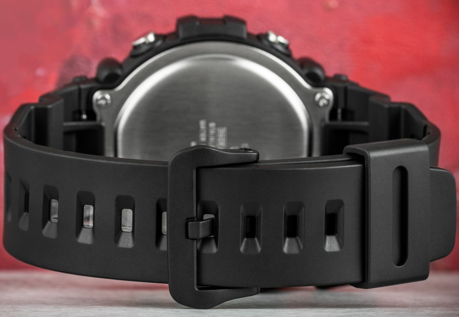 Мужские кварцевые наручные часы с цифровым отображением времени. Серия Casio Collection Standard Digital. Дисплей подсвечивается светодиодом c функцией послесвечения. 12/24 часовой формат отображения времени. Второй часовой пояс. Секундомер с точностью показаний 1/100 секунды и временем измерения 24 часа. Режимы измерения: прошедшее время, промежуточное время, два финишных результата. 5 многофункциональны будильников (ежедневный; будильник, настроенный на определенный день; будильник, настроенный на ежедневное звучание в течение месяца; ежемесячный будильник), один будильник с функцией повтора сигнала Snooze, ежечасный сигнал. Продолжительность звучания сигнала будильника 10 секунд. Таймер обратного отсчета от 1 минуты до 24 часов с автоповтором. Автоматический календарь до 2099 года. Пластиковое стекло. Круглый пластиковый корпус чёрного цвета размером 54,4 мм на 51,2мм, толщиной 15,7мм. Чёрный пластиковый ремешок с классической застежкой buckle. Батарея рассчитана на 10 лет. Водонепроницаемость 100WR (часы подходят для плавания с маской, трубкой, обычного плавания). Вес около 59 г.