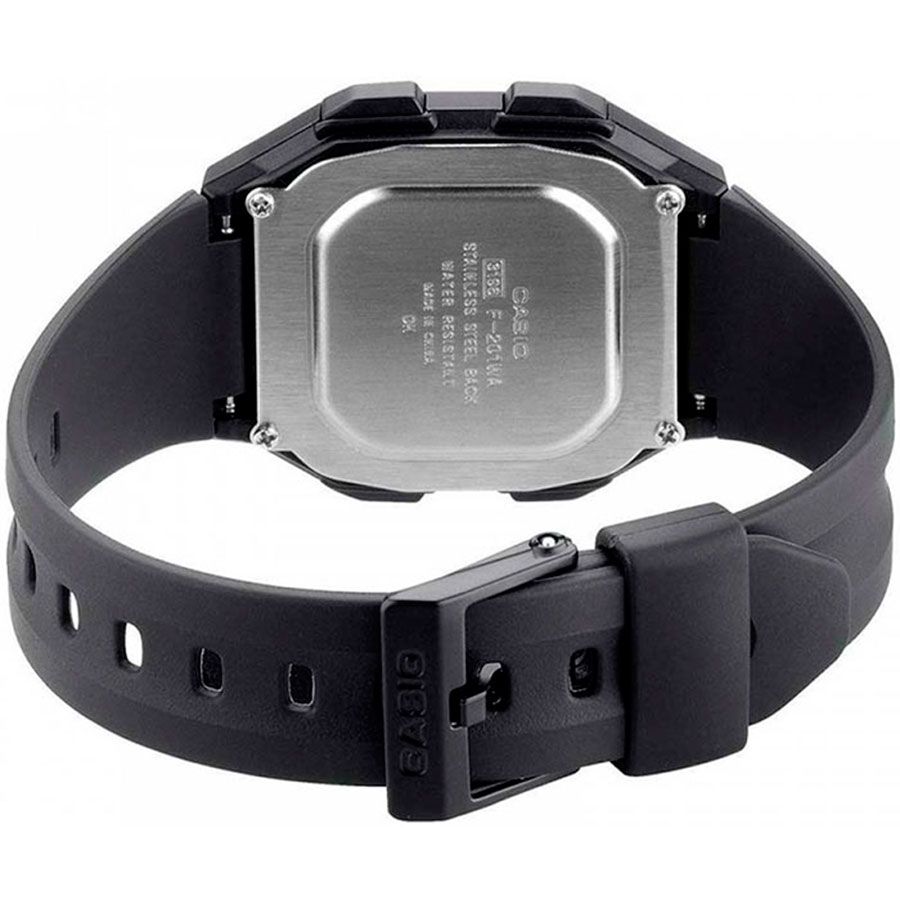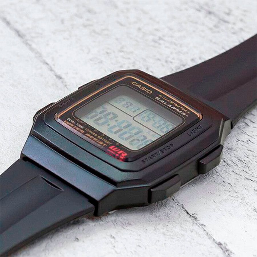 Мужские кварцевые электронные часы. Серия Casio Collection. Циферблат подсвечивается светодиодом с функцией послесвечения. 12/24х часовой формат отображения времени. Второй часовой пояс. Секундомер с точностью показаний 1/100 секунды и временем измерения 24 часа. Таймер обратного отсчета от 1мин до 1ч. Будильник с пятью многофункциональными звуковыми сигналами, ежечасный сигнал. Один будильник с функцией повтора сигнала Snooze. Автоматический календарь до 2099 года. Прямоугольный пластиковый корпус чёрного цвета. Размер корпуса 41мм на 34мм, толщина 10,5 мм. Пластиковый ремешок чёрного цвета с классической застежкой buckle. Пластиковое стекло. Батарея рассчитана на 10 лет. Водонепроницаемость WR30 (защита от брызг). Вес примерно 23.5 г.