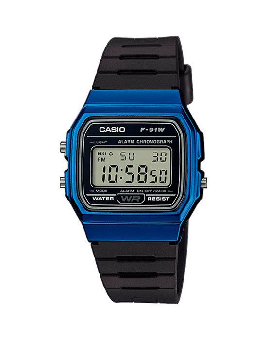 Кварцевые электронные наручные часы на каждый день в популярном ретро-стиле. Серия Casio Collection. Унисекс часы. Дисплей подсвечивается светодиодом, цвет подсветки зеленый. 12-ти и 24-х часовой формат отображения времени. Секундомер с точностью показаний 1/100 с и временем измерения 1ч. Режимы измерения: прошедшее время, промежуточное время, два финишных результата. Ежедневный будильник, ежечасный сигнал. Автоматический календарь с установкой 28 дней на февраль. Прямоугольный пластиковый корпус синего цвета. Размеры корпуса 38,2мм на 35,2 мм, толщина 8.5 мм. Пластиковое стекло. Чёрный пластиковый ремешок с классической застежкой buckle. Стальная задняя крышка крепится на 4-х винтах. Батарейка рассчитана на 7 лет. Водонепроницаемость WR30 (защита от брызг). Вес около 21 г.