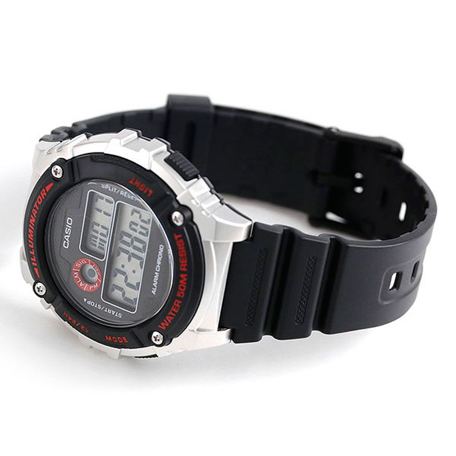 Мужские кварцевые электронные наручные часы. Серия Casio Collection. Циферблат подсвечивается светодиодом. Цвет подсветки оранжевый. 12-ти и 24-х часовой формат отображения времени. Секундомер с точностью показаний 1/100 с и временем измерения 1 ч. Режимы измерения: прошедшее время, промежуточное время, два финишных результата. Ежедневный будильник, сигнал начала часа. Автоматический календарь до 2099 года, учитывающий 28 дней в феврале. Круглый корпус из полимерного пластика зелёного цвета. Пластиковое стекло. Размер корпуса 43,8мм на 46 мм, толщина 11.3 мм. Пластиковый ремешок зелёного цвета с классической застежкой buckle. Батарея рассчитана на 7 лет. Стальная задняя крышка крепится на 4-х винтах. Водонепроницаемость WR50 (мытьё рук, дождь). Вес около 35 г.