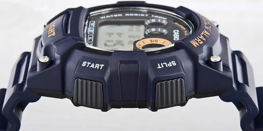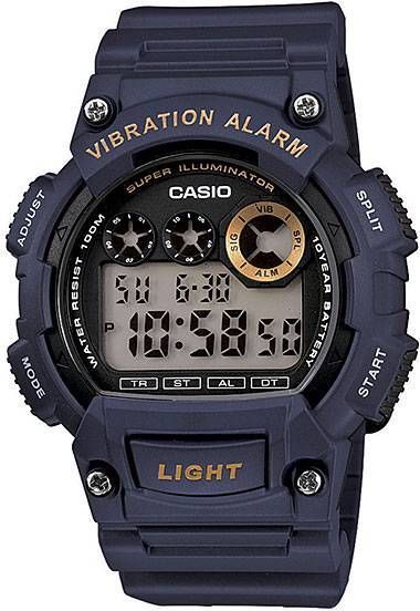 Мужские кварцевые электронные наручные часы. Серия Casio Collection Standard Digital. Циферблат подсвечивается светодиодом. 12-ти и 24-х часовой формат отображения времени. Второй часовой пояс. Секундомер с точностью показаний 1/100 с и временем измерения 24ч. Режимы измерения: прошедшее время, промежуточное время, два финишных результата. Таймер обратного отсчета от 1 мин до 24 ч. Ежедневный будильник, сигнал начала часа, виброуведомление (будильник с функцией вибро). Автоматический календарь до 2099 года. Включение/выключение звука кнопок. Круглый корпус из полимерного пластика синего цвета. Размеры корпуса 47.1 мм на 51,4 мм, толщина 16.1 мм. Синий пластиковый ремешок с классической застежкой buckle. Срок службы батареи около 10 лет. Водонепроницаемость WR100 (часы подходят для плавания с маской, трубкой и обычного плавания). Вес около 50 г.
