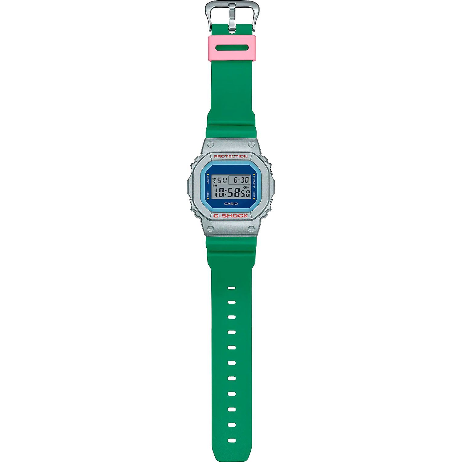 Мужскиее кварцевые электронные часы. Коллекция G-Shock. Противоударный корпус защищает механизм часов от ударов и вибрации. Светодиодная подсветка с функцией послесвечения. Световой сигнал (LED-индикатор) - светодиодная лампочка начинает мигать при сигнале будильника, окончании таймера обратного отсчета или секундомера. Секундомер с точностью показаний 1/100 секунды (первый час), 1 секунда (через 1 час) и пределом измерения 24 часа. Режимы измерения: прошедшее время, промежуточное время, два финишных результата. Таймер обратного отсчета от 1 секунды до 24 часов (с шагом в 1 секунду, с шагом в 1 минуту и с шагом в 1 час) с автоповтором. 12-ти и 24-х часовой формат отображения времени. Многофункциональный будильник: ежедневный звуковой сигнал, индикация начала часа. Автоматический календарь до 2099 г. Прямоугольный корпус из полимерного пластика серого цвета. Размер корпуса 42,8 мм x 48,9 мм , толщина 13,4 мм. Зелёный ремешок из полимерного пластика, стандартная застежка. Прочное минеральное стекло устойчивое к мелким механическим повреждениям. Водостойкость WR 200 (плавание и ныряние без акваланга). Вес примерно 52 г.