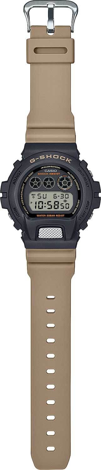 Мужские кварцевые электронные часы. Коллекция G-Shock. Противоударный корпус защищает механизм часов от ударов и вибрации. Светодиодная подсветка с функцией послесвечения. Световой сигнал (LED-индикатор) - светодиодная лампочка мигает при сигнале будильника, окончании таймера обратного отсчета или секундомера. Секундомер с точностью показаний 1/100 секунды (первый час), 1 секунда (через 1 час) и временем измерения 24 часа. Режимы измерения: прошедшее время, промежуточное время, два финишных результата. Таймер обратного отсчета от 1 секунды до 24 часов (с интервалом в 1 секунду, с интервалом в 1 минуту и с интервалом в 1 час) с автоповтором. 12-ти и 24-х часовой формат отображения времени. Многофункциональный будильник, ежедневный звуковой сигнал, индикация начала часа. Автоматический календарь до 2099 г. Круглый корпус из полимерного пластика чёрного цвета. Размер корпуса 50 мм на 53,2 мм , толщина 18,7 мм. Бежевый пластиковый ремешок с классической застежкой. Минеральное стекло устойчивое к мелким механическим повреждениям. Батарейка рассчитана на 5 лет. Водостойкость WR 200 (плавание и ныряние без акваланга). Вес примерно 72 г.