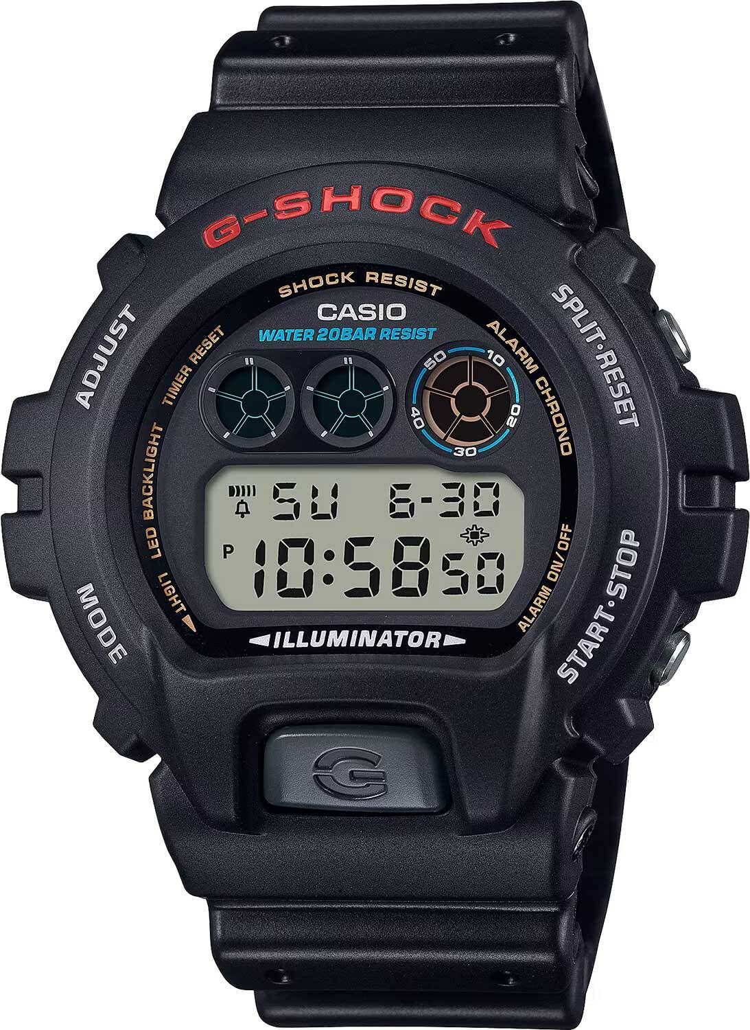 Мужские кварцевые электронные часы. Коллекция G-Shock. Противоударный корпус защищает механизм часов от ударов и вибрации. Светодиодная подсветка с функцией послесвечения. Световой сигнал (LED-индикатор) - светодиодная лампочка мигает при сигнале будильника, окончании таймера обратного отсчета или секундомера. Секундомер с точностью показаний 1/100 секунды (первый час), 1 секунда (через 1 час) и временем измерения 24 часа. Режимы измерения: прошедшее время, промежуточное время, два финишных результата. Таймер обратного отсчета от 1 секунды до 24 часов (с интервалом в 1 секунду, с интервалом в 1 минуту и с интервалом в 1 час) с автоповтором. 12-ти и 24-х часовой формат отображения времени. Многофункциональный будильник, ежедневный звуковой сигнал, индикация начала часа. Автоматический календарь до 2099 г. Круглый корпус из полимерного пластика чёрного цвета. Размер корпуса 50 мм на 53,2 мм , толщина 18,7 мм. Чёрный пластиковый ремешок с классической застежкой. Минеральное стекло устойчивое к мелким механическим повреждениям. Батарейка рассчитана на 5 лет. Водостойкость WR 200 (плавание и ныряние без акваланга). Вес примерно 67 г.