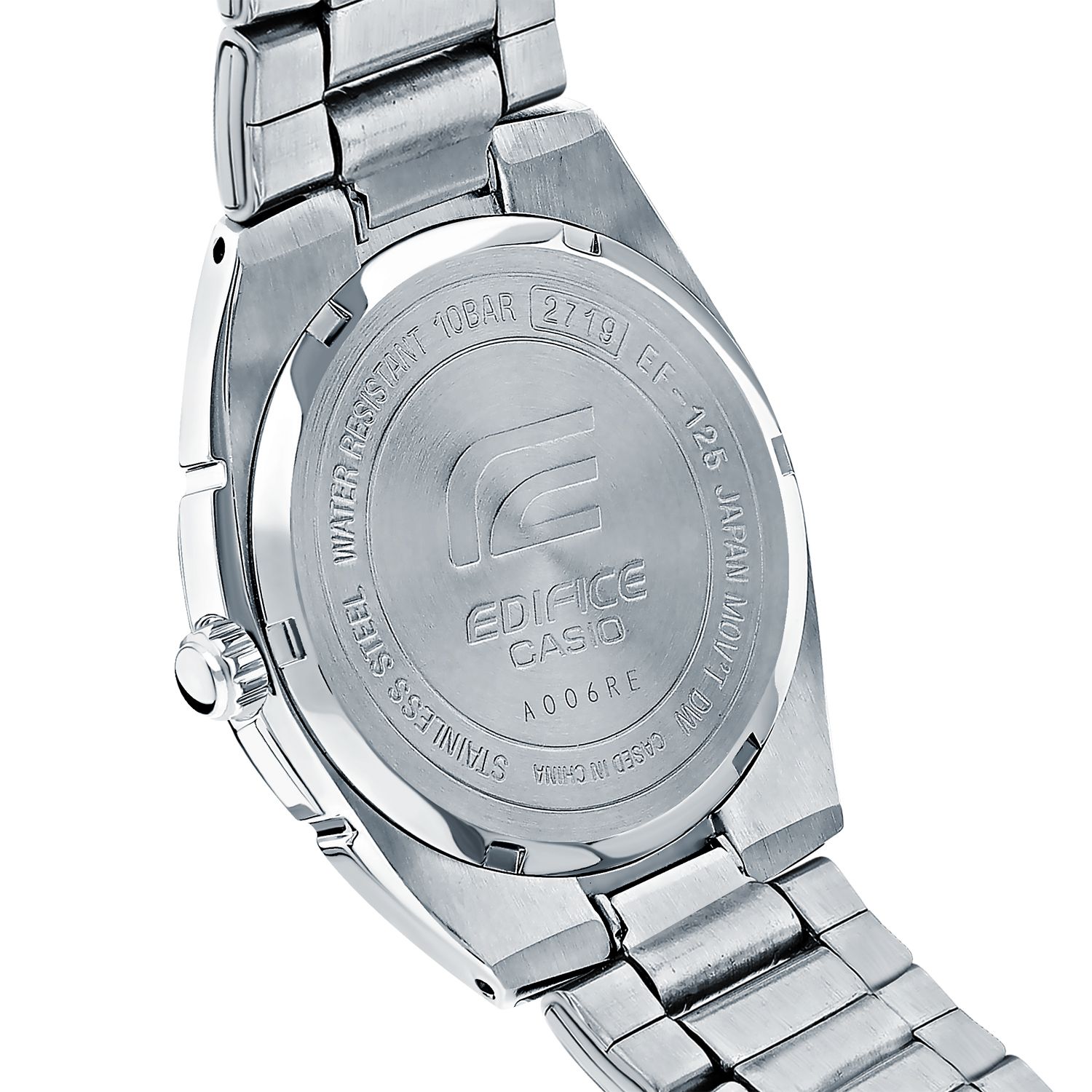 Ремешок из нержавеющей стали с застежкой-клипсой автомат обеспечивает надежную фиксацию и комфорт при ношении. Диаметр корпуса составляет 40 мм, а толщина — 9.9 мм, что делает часы универсальными для любого запястья. Вес модели — 127 грамм, что подчеркивает их легкость и удобство. Часы Casio Edifice сочетают в себе элегантный дизайн, высокую функциональность и надежность, идеально подходя для повседневного использования или делового стиля.