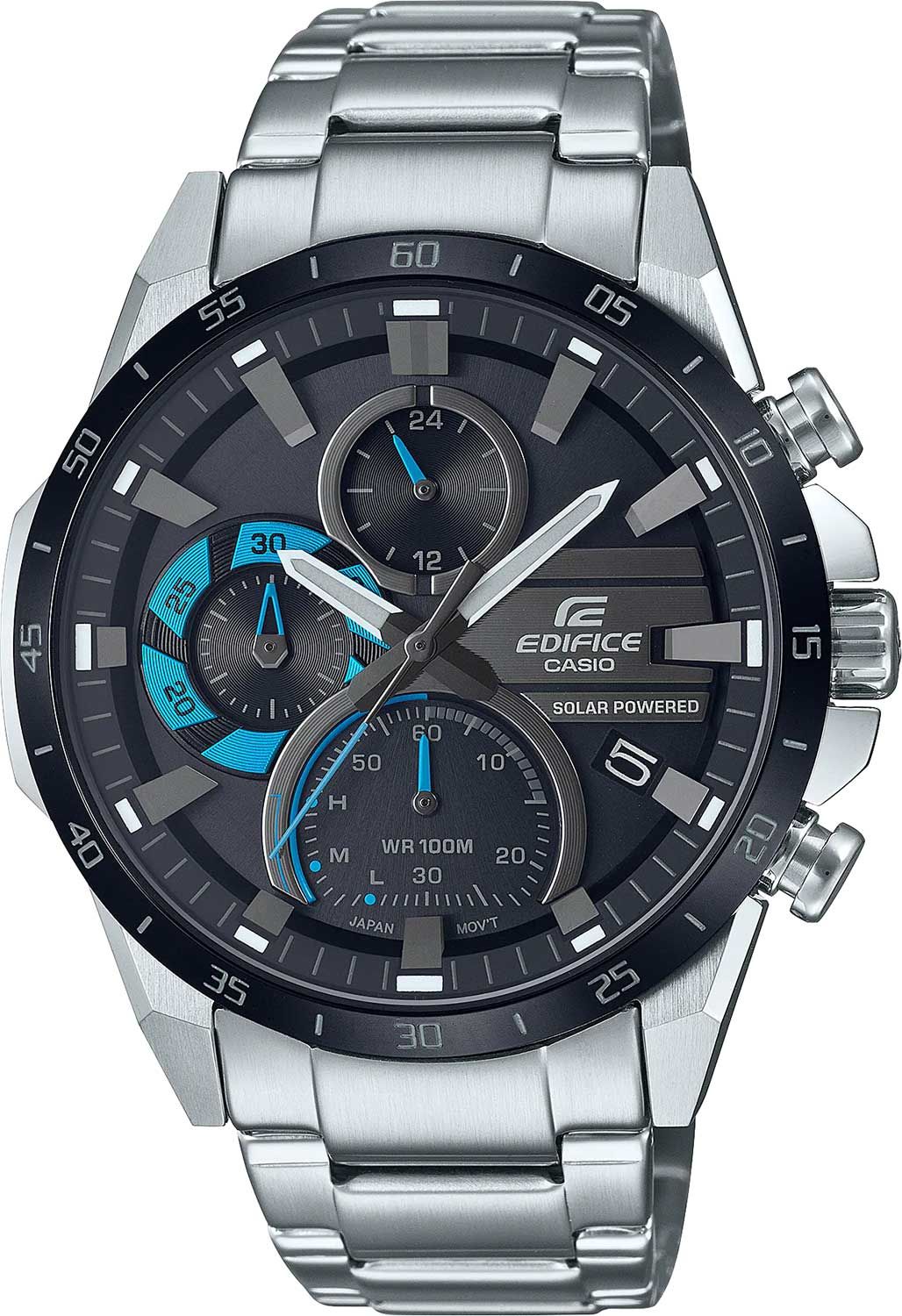 Мужские кварцевые аналоговые наручные часы. Серия Edifice. Питание от солнечной энергии Tought Solar- источником питания служит светочувствительная панель и аккумулятор, который