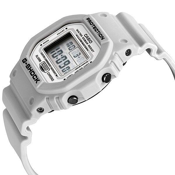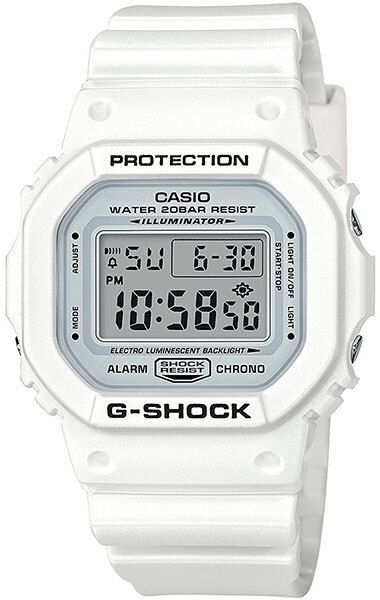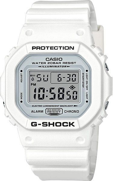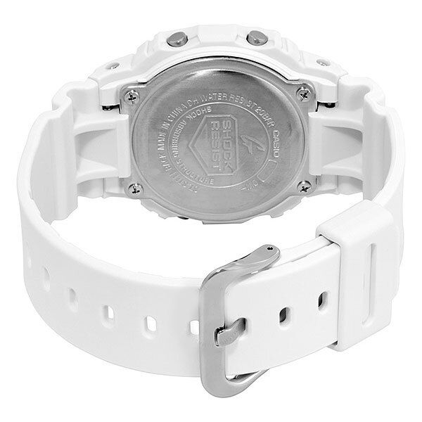 Мужские электронные кварцевые часы. Коллекция G-Shock Marine White. Противоударный корпус защищает механизм часов от ударов и вибрации. Электролюминесцентная подсветка освещает весь дисплей, функция послесвечения. Световая индикация сигнала (LED-индикатор) - светодиодная лампочка мигает при сигнале будильника, окончании таймера обратного отсчета или секундомера. Секундомер с точностью показаний 1/100 секунды (первый час), 1 секунда (через 1 час) и временем измерения 24 часа. Режимы измерения: прошедшее время, промежуточное время, два финишных результата. Таймер обратного отсчета от 1 секунды до 24 часов с автоповтором. 12-ти и 24-х- часовой формат отображения времени. Многофункциональный будильник, ежедневный звуковой сигнал, индикация начала часа. Автоматический календарь до 2099 г. Прямоугольный корпус из полимерного пластика белого цвета. Размер корпуса 42,8 мм на 48,9 мм, толщина 13,4 мм. Белый пластиковый ремешок со стандартной застёжкой Buckle. Минеральное стекло устойчивое к мелким механическим повреждениям. Стальная задняя крышка. Батарейка рассчитана на 2 года. Водонепроницаемость WR200 (плавание и ныряние без акваланга). Вес около 53 г.