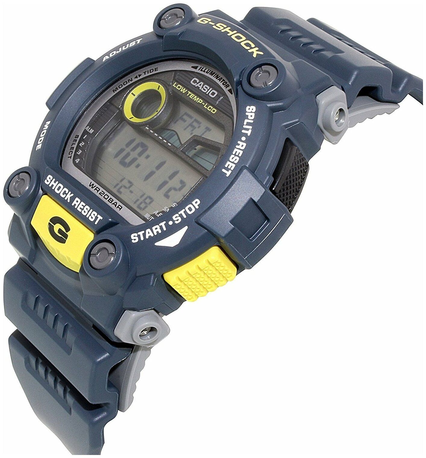 Часы Casio G-7900-2D оснащены такими дополнительными опциями, как: будильник, ежечасный сигнал, Snooze, мировое время, секундомер, таймер, фазы луны, ударопрочная конструкция, таймер обратного отсчета, при повороте часов в сторону лица, 5 будильников, ежечасный сигнал, 12/24 формат времени, отображение возраста и фазы луны, графическое отображение сведений о приливах и отливах.