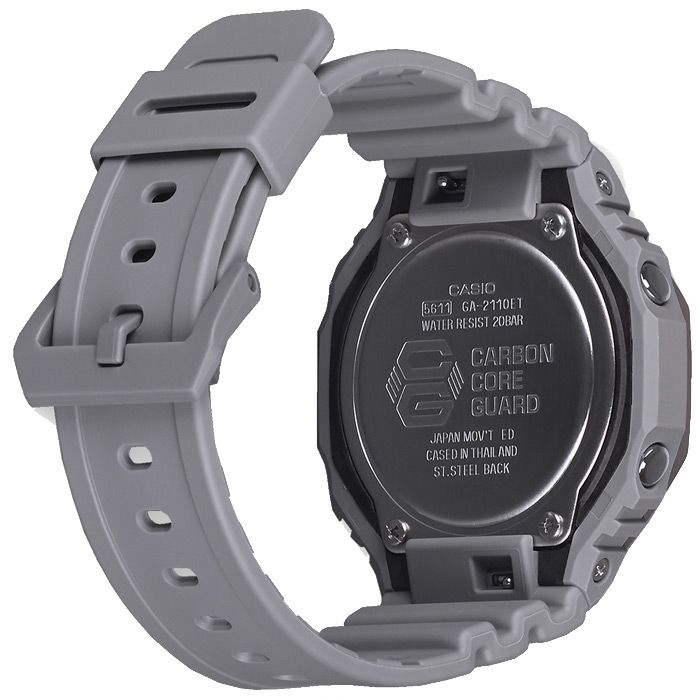 Мужские кварцевые аналого-цифровые наручные часы. Серия G-Shock. Противоударный пластиковый корпус с углеродными волокнами (структура Carbon Core Guard) более прочный и в то же время более легкий, защищает механизм часов от ударов и вибраций. Двойная светодиодная подсветка обеспечивает подсветку не только цифрового дисплея, но и аналогового циферблата. Настройка продолжительности подсветки 1,5 или 3 секунды, послесвечение. Светящееся покрытие стрелок обеспечивает длительное послесвечение в темноте после короткого воздействия света. 12-ти и 24-х часовой формат отображения времени. Ретроградный стрелочный указатель для недели. Секундомер с точностью показаний 1/100 с (первый час) и 1 с (после первого часа) и временем измерения 24 часа. Режимы измерения: прошедшее время, промежуточное время, два финишных результата. Таймер обратного отсчета от 1 секунды до 24 часов с автоповтором. Мировое время - 31 часовой пояс (48 городов), всемирное координированное время (UTC), включение/отключение летнего времени. 5 ежедневных будильников, ежечасный сигнал. Функция перемещения стрелок для удобного просмотра информации на цифровом экране. Функция отключения/включения звука кнопок. Автоматический календарь до 2099 года. Усиленный углеродными волокнами пластиковый восьмиугольный корпус серого цвета. Размер корпуса 48,5 мм на 45,4 мм, толщина 11,8 мм. Устойчивое к мелким механическим повреждениям минеральное стекло. Серый циферблат с часовыми метками в виде штрихов. Серый пластиковый ремешок со стандартной застёжкой Buckle. Батарейка рассчитана на 3 года. Водонепроницаемость 200WR (плавание и ныряние без акваланга). Вес около 51 г.