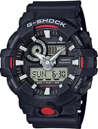 Ударопрочные часы со всеми свойствами и преимуществами знаменитых G-Shock. Многофункциональный кварцевый механизм, модуль 5522 с двойной цифро-аналоговой индикацией при помощи многофункциональных стрелок и на жидкокристаллическом дисплее. Точность хода с погрешностью не более +/-15 секунд в месяц. Элемент питания CR2016 рассчитан на 5 лет работы. Функции: • Яркая светодиодная LED-подсветка срабатывает при нажатии на кнопку. Изменяемое время свечения – 1,5 или 3 секунды. • Отображение мирового времени в 31 часовых поясах с отображением 48 основных городов в них + GMT. • Секундомер с точностью показаний 1/100 сек и максимальным временем измерения 24 часа. Режимы измерения – SPLIT и ADD. • Таймер обратного отсчета на 60 минут с точностью в 1 секунду. • 5 ежедневных будильников, устанавливаемых на определенное время, один с функцией Snooze, ежечасный сигнал. • Вкл./Откл. звука кнопок. • Подстройка положения стрелок при нажатии кнопок, таким образом, чтобы не закрывать дисплей и вспомогательные индикаторы. • Автоматический календарь, не требующий дополнительной корректировки, может быть настроен по 2099 год. • Отображение времени в 12/24 часовом формате. Особая ударопрочная конструкция корпуса защищает механизм-модуль часов от ударов и вибрации. • Комбинированный корпус выполнен из нерж. стали 316L и композитного полимерного материала. • Размеры корпуса 53,4 мм (по оси заводной головки) х 57,5 мм (по вертикали) х 18,4 мм (толщина). Вес приблизительно 69 грамм. • Минеральное стекло устойчивое к возникновению царапин. • Трехмерный циферблат, большие часовые метки с объемной 3Dструктурой. • Люминесцентный состав на стрелках и часовых метках с ярким послесвечением даже после кратковременного воздействия света. • Стальная задняя крышка из нерж. стали с гравировкой соединена с корпусом 4 винтами. • Водостойкость 200 метров. • Ремешок из полимерного материала, стандартная застежка с двойным шипом.