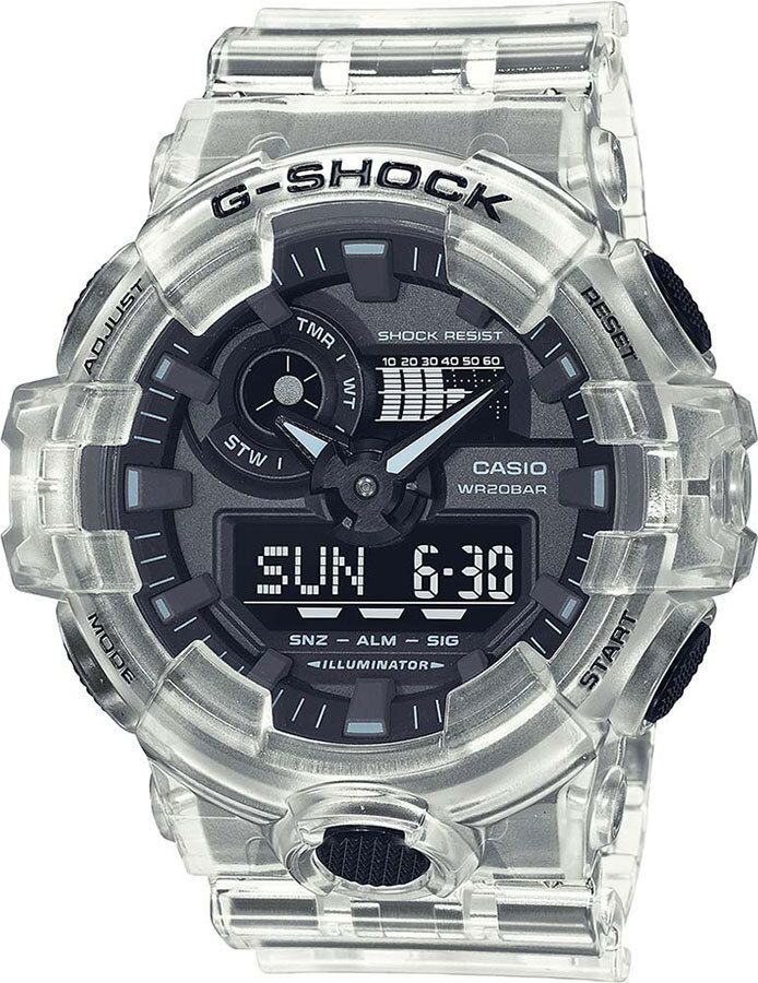 Многофункциональный кварцевый механизм, модуль 5522 с двойной цифро-аналоговой индикацией при помощи многофункциональных стрелок и на жидкокристаллическом дисплее. Точность хода с погрешностью не более +/-15 секунд в месяц. Элемент питания CR2016 рассчитан на 5 лет работы. Функции: • Яркая светодиодная LED-подсветка срабатывает при нажатии на кнопку. Изменяемое время свечения – 1,5 или 3 секунды. • Отображение мирового времени в 31 часовых поясах с отображением 48 основных городов в них + GMT. • Секундомер с точностью показаний 1/100 сек и максимальным временем измерения 24 часа. Режимы измерения – SPLIT и ADD. • Таймер обратного отсчета на 60 минут с точностью в 1 секунду. • 5 ежедневных будильников, устанавливаемых на определенное время, один с функцией Snooze, ежечасный сигнал. • Вкл./Откл. звука кнопок. • Подстройка положения стрелок при нажатии кнопок, таким образом, чтобы не закрывать дисплей и вспомогательные индикаторы. • Автоматический календарь, не требующий дополнительной корректировки, может быть настроен по 2099 год. • Отображение времени в 12/24 часовом формате. Особая ударопрочная конструкция корпуса защищает механизм-модуль часов от ударов и вибрации. • Комбинированный корпус выполнен из нерж. стали 316L и композитного полимерного материала. • Размеры корпуса 53,4 мм (по оси заводной головки) х 57,5 мм (по вертикали) х 18,4 мм (толщина). Вес приблизительно 69 грамм. • Минеральное стекло устойчивое к возникновению царапин. • Трехмерный циферблат, большие часовые метки с объемной 3Dструктурой. • Люминесцентный состав на стрелках и часовых метках с ярким послесвечением даже после кратковременного воздействия света. • Стальная задняя крышка из нерж. стали с гравировкой соединена с корпусом 4 винтами. • Водостойкость 200 метров. • Ремешок из полимерного материала, стандартная застежка с двойным шипом. Размер Мужские Тип механизма Кварцевые + Электронные Корпуc Пластик Стекло Минеральное Браслет/Ремешок Резиновый Водозащищенность 200 метров