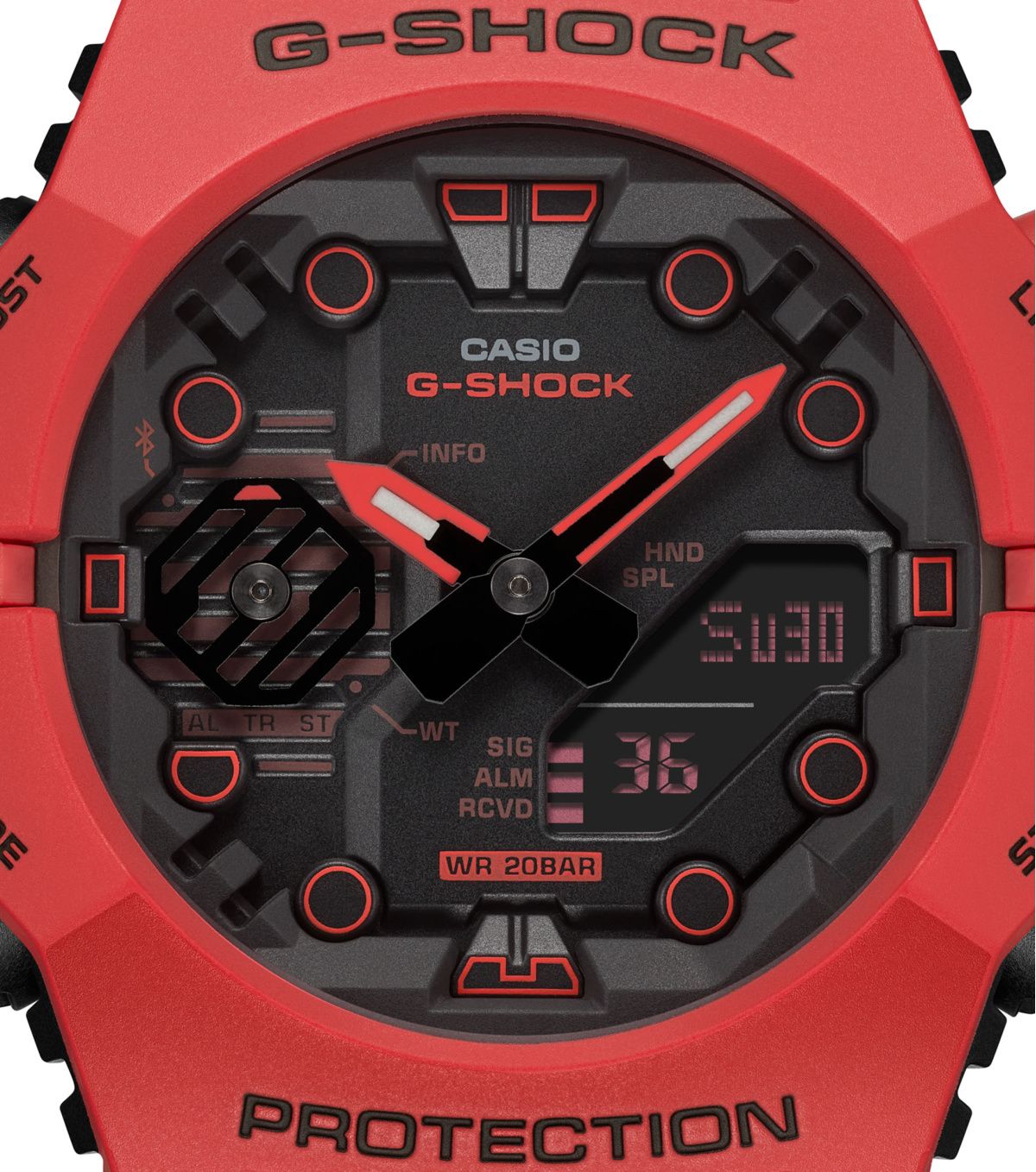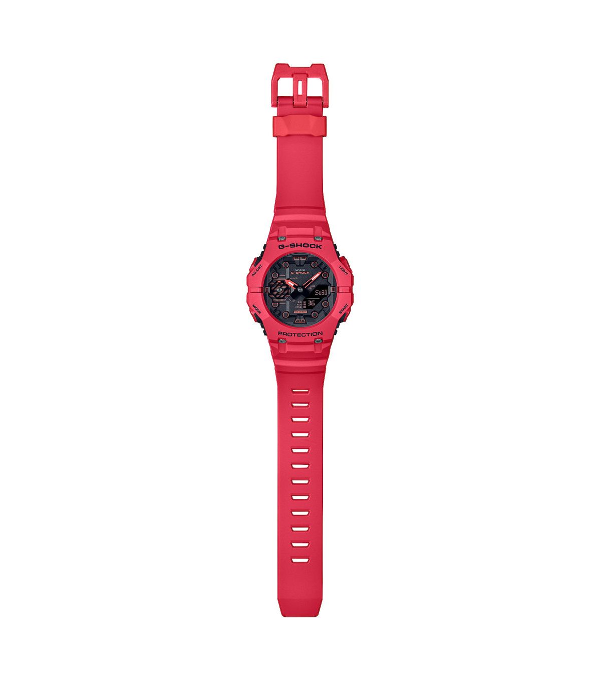 Мужские кварцевые аналогово-цифровые наручные часы. Серия Casio G-Shock. Модель отличается уникальной конструкцией с двумя отдельными безелями, которые соединяются в положениях «9 часов» и «3 часа» . Структура Carbon Core Guard. Противоударный пластиковый корпус усиленный карбоновыми волокнами более прочный и, в то же время, более легкий. Этот же материал защищает внутренний модуль от повреждений и деформаций при ударах. Светодиодная сверхяркая подсветка. 12-ти и 24-х часовой формат времени. Функция секундомера 1/100 с - 24 часа - прошедшее время измеряется с точностью в 1/100 секунды, пределы измерения достигают 24 часов. Таймер обратного отсчета от 1 секунды до 24 часов. Мировое время – 38 городов (38 часовых поясов), всемирное координированное время (UTC). Функция включения/отключения летнего времени. Переключение между домашним и мировым временем. Беспроводная технология Bluetooth® со сверхнизким потреблением энергии для синхронизации со смартфоном. При подключении к смартфону часы автоматически корректируют текущее время, в том числе переход на зимнее/летнее время, копируют настройки мирового времени более чем для 300 городов. Функции поиска телефона, отключения/включения звука и перемещения стрелок. Отображение дней недели на шести языках. Смена отображения даты/месяца. Автоматический календарь. Усиленный углеродными волокнами пластиковый корпус. Пластиковый ремешок.