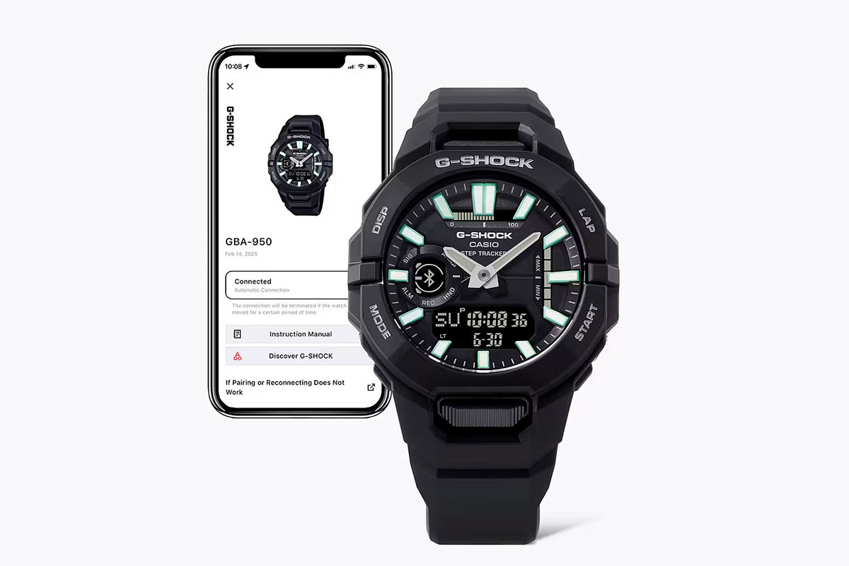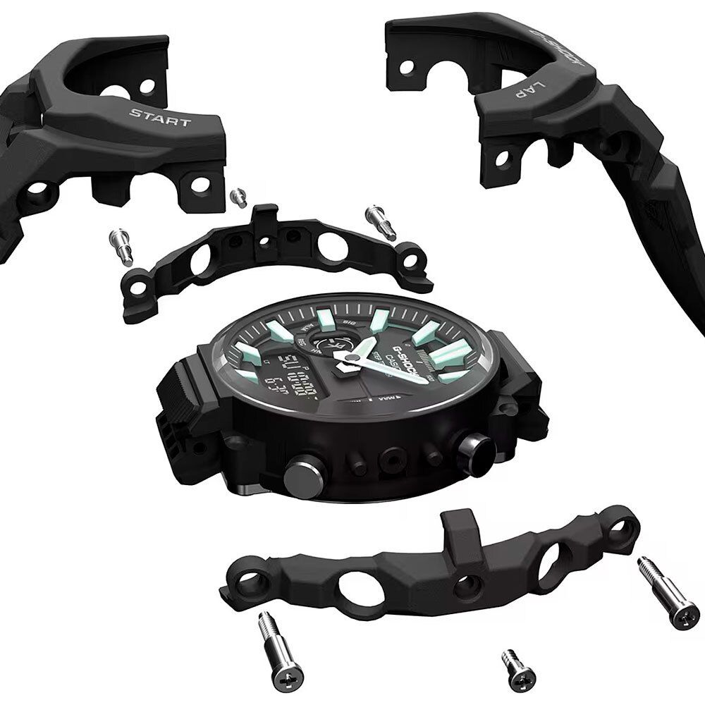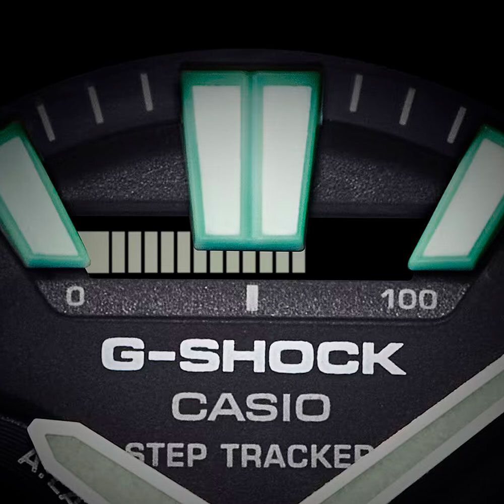 Мужские кварцевые аналого-цифровые наручные часы. Серия Casio G-Shock G-Squad. Спортивные часы для бегунов и любителей активного образа жизни. Цельная бесшовная конструкция безеля и ремешка обеспечивает плотную и удобную посадку часов на запястье. Противоударный корпус защищает механизм часов от ударов и вибрации. Двойная светодиодная подсветка (циферблата и ЖК-дисплея) с настраиваемой функцией послесвечения 1,5 или 3 секунды. 12-ти и 24-х часовой формат отображения времени. Секундомер с точностью показаний 1/100 секунды и временем измерения 24 ч. Режимы измерения: прошедшее время, время прохождения круга и части дистанции, память на 45 записей с данными о времени, дистанции, среднем темпе и сожженных калориях. Таймер обратного отсчёта от от 1 секунды до 24 часов с автоповтором, возможность установки до 5 таймеров. Количество повторений таймера от 1 до 20. Шагомер (в верхней части циферблата размещена шкала трекера шагов) автоматически начинает отсчет шагов при начинал движения. Точное количество шагов отображается на дисплее, а шкала у отметки 12 часов показывает прогресс достижения цели в процентах. Одновременное отображение текущего времени в двух разных часовых поясах. Мировое время – 300 городов. 5 ежедневных будильников, ежечасный сигнал. Часы оснащены беспроводной технологией Bluetooth® со сверхнизким потреблением энергии для синхронизации со смартфоном. При подключении к смартфону часы автоматически корректируют текущее время и получают доступ к ряду функций. Функция перемещения стрелок для удобного просмотра информации на цифровом экране. Функция отключения/включения звука кнопок. Функция поиска телефона. Предупреждение о низком уровне заряда аккумуляторной батареи. Автоматический календарь до 2099 года. Круглый корпус из биопластика (изготавливается из возобновляемых органических ресурсов) чёрного цвета. Размеры корпуса 48,5 мм на 43,9мм, толщина 16мм. Чёрный циферблат с часовыми метками в виде штрихов. Центральные часовая и минутная стрелки. Стрелки и метки с люминесцентным покрытием, которое светится в темноте после непродолжительного воздействия света. Устойчивое к мелким механическим повреждениям минеральное стекло. Ремешок чёрного цвета из биопластика (изготавливается из возобновляемых органических ресурсов) с классической застёжкой buckle. Батарея рассчитана на 2 года. Водонепроницаемость 200WR (плавание и погружение без акваланга). Вес около 53 г.