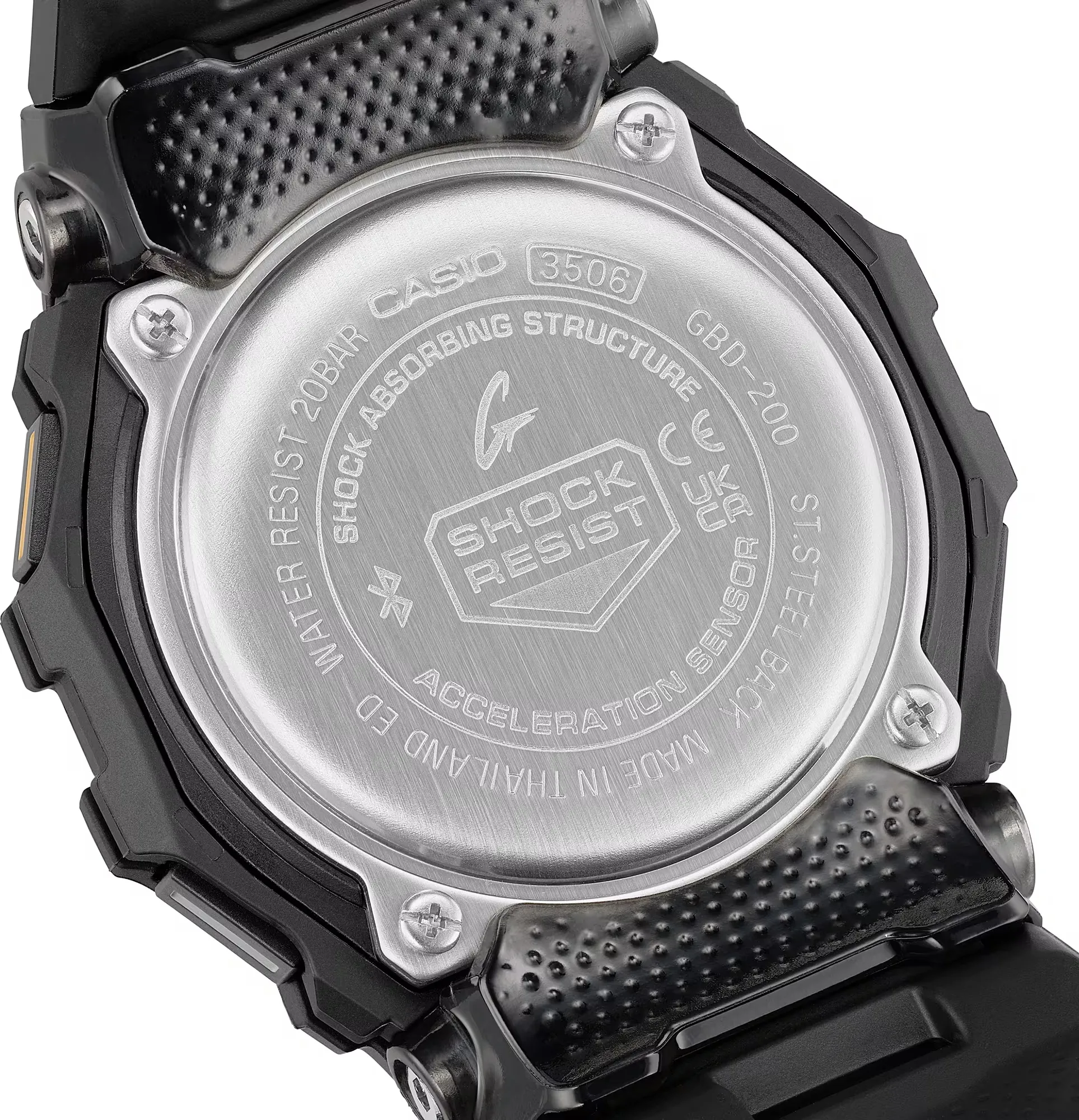 Мужские кварцевые наручные часы с цифровым отображением времени. Серия Casio G-Shock G-Squad. Часы оснащены шагомером и возможностью подключения к смартфону через Bluetooth® Smart, что позволяет вести учет физической активности и управлять настройками из приложения G-SHOCK Move®. Противоударный корпус защищает механизм часов от ударов и вибрации. Часы оснащены беспроводной технологией Bluetooth® со сверхнизким потреблением энергии для синхронизации со смартфоном. При подключении к смартфону часы корректируют текущее время, дату и мировое время и получают доступ к ряду полезных функций. Светодиодная автоматическая подсветка с выбираемой длительностью свечения 1,5 или 3 секунды. Функция автоподсветки - при недостаточной освещенности поворот руки включит подсветку часов. Функция поиска телефона. Функция виброуведомлений. Функция энергосбережения -дисплей гаснет для экономии энергии на 3 часа каждый день. Шагомер (подсчет шагов с помощью 3-осевого акселерометра) - измеряет и отображает от 0 до 99 999 шагов. Акселерометр - датчик движения реагирует на ускорение, а затем отображает полученные данные на экране дисплея. Кроме того, датчик поддерживает функцию автоматического поворота часов, гарантируя, что изображение на экране всегда будет иметь нужную ориентацию. Журнал тренировки: до 100 записей, каждая из которых содержит до 140 результатов тренировки (прошедшее время, пройденная дистанция, скорость, темп, количество сожженных калорий). Анализ и планировщик тренировок. Авиарежим - часы переключаются в режим оффлайн нажатием кнопки. С помощью этой функции можно отключить радио- и GPS-приемник на время перелета. Секундомер с точностью показаний 1 с временем измерения 100 часов. Режимы измерения: прошедшее время, промежуточное время. Память на 100 кругов. Таймер обратного отсчета от 1с до 1ч с автоповтором. Настройка времени работы 5 последовательных таймеров. Автоматический календарь до 2099 года. 12/24х часовой формат отображения времени. 4 ежедневных будильника, один с функцией повтора сигнала (Snooze). Мировое время - 38 городов (38 часовых поясов), всемирное координированное время (UTC), включение/отключение летнего времени. Включение/выключение звука кнопок. Корпус из полимерного пластика чёрного цвета. Размеры корпуса 48,4 мм на 45,9мм, толщина 15мм. Устойчивое к мелким механическим повреждениям минеральное стекло. Чёрный пластиковый ремешок с классической застёжкой buckle. Батарейка рассчитана на 2 года. Водонепроницаемость 200WR (часы подходят для плавания с маской, трубкой, обычного плавания). Вес около 58 г.