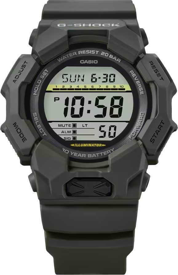 Мужские кварцевые электронные наручные часы. Серия G-Shock. Противоударный корпус из биопластика (изготавливается из возобновляемых органических ресурсов) с углеродными волокнами (структура Carbon Core Guard) более прочный и в то же время более легкий, защищает механизм часов от ударов и вибраций. Циферблат подсвечивается светодиодом., послесвечение. 12-ти и 24-х часовой формат отображения времени. Секундомер с точностью показаний 1/100 с и временем измерения 24 часа. Режимы измерения: прошедшее время, промежуточное время, два финишных результата. Таймер обратного отсчета от от 1 с до 24 ч. Мировое время - 31 часовой пояс (48 городов), всемирное координированное время (UTC), включение/отключение летнего времени. Переключение между домашним и мировым временем. Возможность выбора до 4 городов в качестве избранных. 5 будильников, ежечасный сигнал. Функция отключения/включения звука кнопок. Автоматический календарь до 2099 года. Усиленный углеродными волокнами пластиковый корпус зелёного цвета. Размер корпуса 51,9 мм на 54,9мм, толщина 16,1мм. Устойчивое к мелким механическим повреждениям минеральное стекло. Зелёный ремешок из биопластика (изготавливается из возобновляемых органических ресурсов) со стандартной застёжкой Buckle. Батарея рассчитана на 10 лет. Водонепроницаемость 200WR (плавание и ныряние без акваланга). Вес около 65 г.