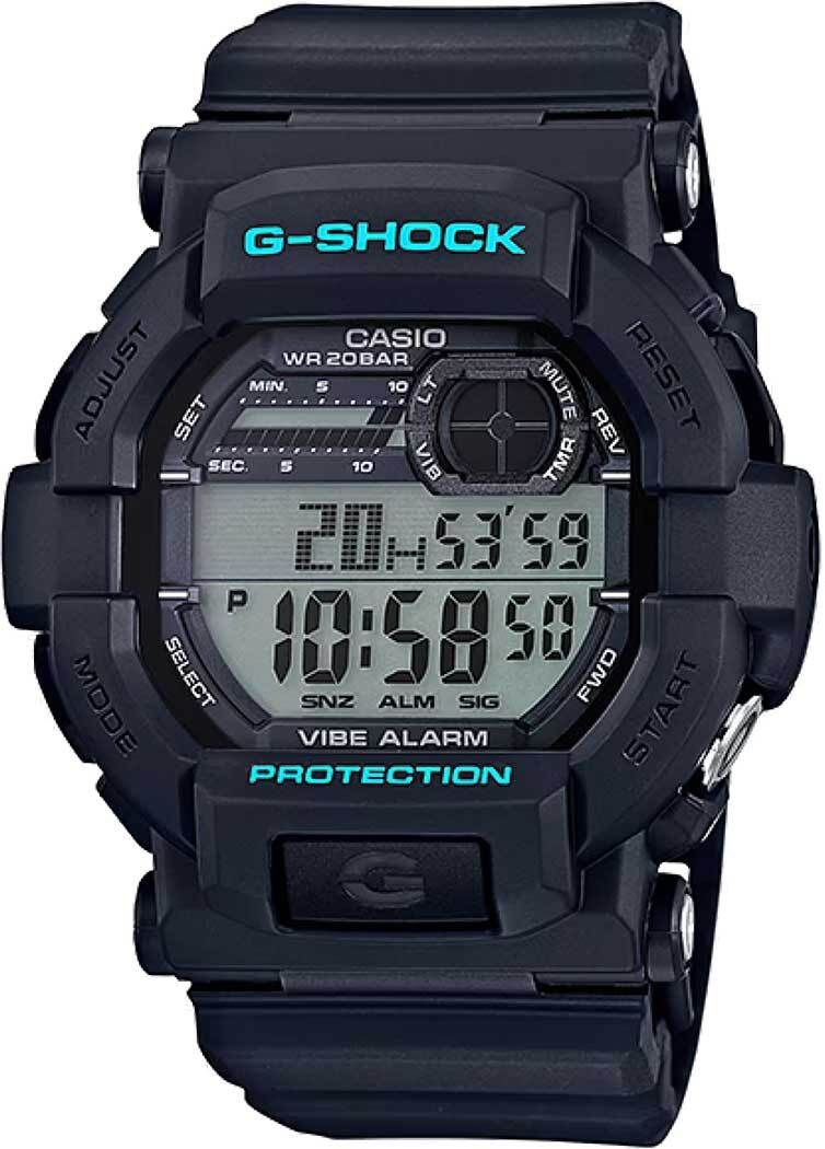 Мужские кварцевые электронные наручные часы. Серия G-Shock. Ударопрочная конструкция корпуса защищает механизм часов от ударов и вибрации. Автоматическая светодиодная подсветка LED - при недостаточной освещенности поворот руки включит подсветку часов. Настраиваемое послесвечение 1,5 или 3с. Световая и вибрационная индикации сигнала. Мировое время: 100 городов (35 часовых поясов), всемирное координированное время (UTC). Функция включения/отключения летнего времени. Отображения названия города. 12-ти и 24-х часовой формат отображения времени. Секундомер с точностью показаний 1/100 с и временем измерения 1000 ч. Режимы измерения: прошедшее время, промежуточное время, два финишных результата. Таймер обратного отсчета от 1 секунды до 24 ч. 5 ежедневных будильников (один с функцией повтора сигнала). Включение/выключение звука кнопок. Автоматический календарь до 2099 года. Индикатор низкого заряда батареи. Круглый корпус из полимерного пластика чёрного цвета. Устойчивое к мелким механическим повреждениям минеральное стекло. Стальная задняя крышка. Чёрный пластиковый ремешок с классической застежкой. Батарейка рассчитана на 5 лет. Водозащита 200WR (плавание и погружение без акваланга). Вес около 75 г. Батарейка рассчитана на 5 лет.