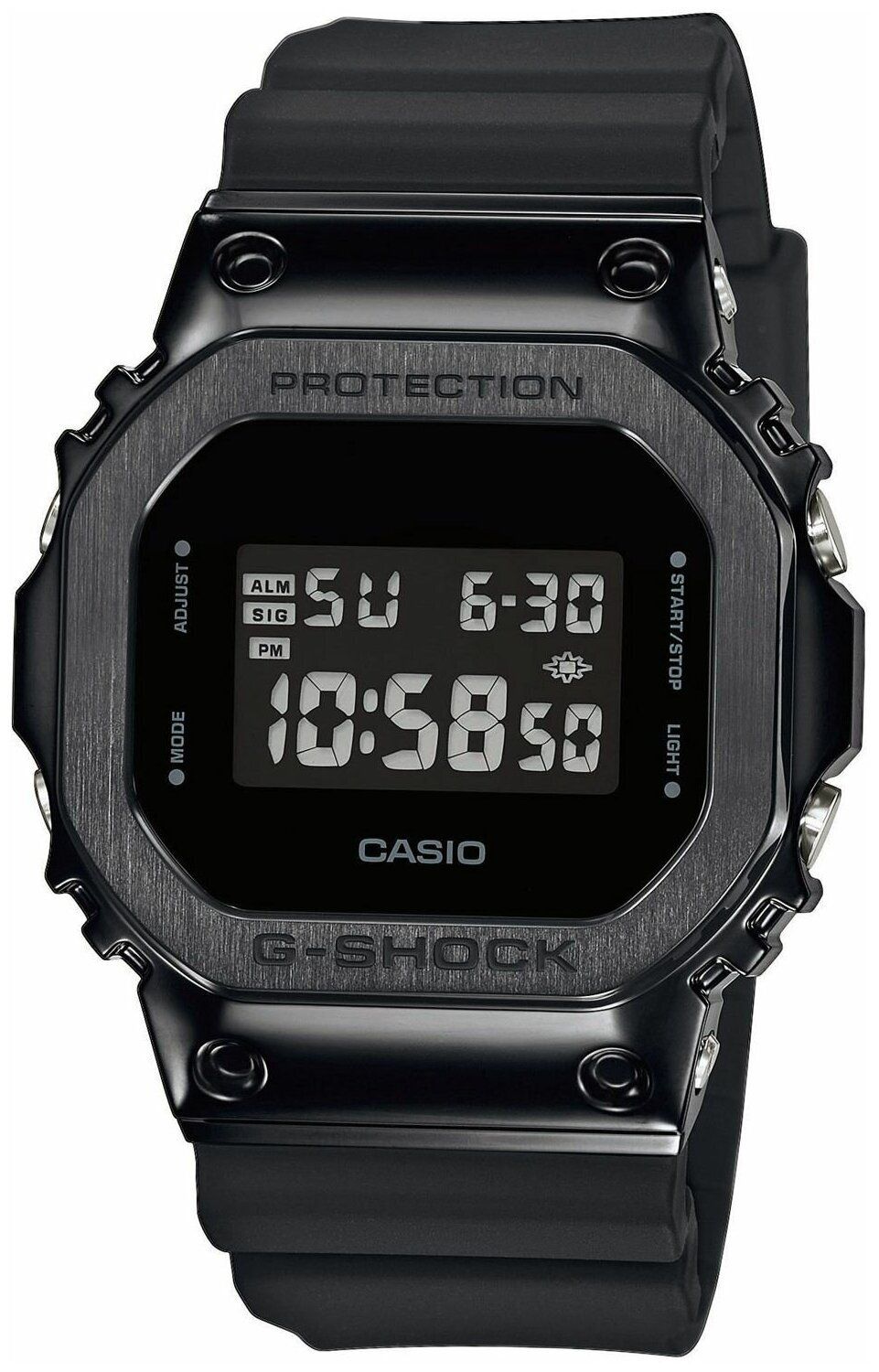 Стильный релиз 2019 года в абсолютно черной стелс-расцветке. Модель выполнена в полимерном корпусе, поверх которого наложена стальная накладка с черным ионным напылением. Электролюминесцентная подсветка обеспечивает равномерное освещение всего циферблата, облегчая считывание данных. В часах есть функция послесвечения - подсветка продолжает работать несколько секунд после того как кнопка подсветки была отпущена. Световая индикация сигнала, цвет подсветки: сине-зеленый. 12-ти и 24-х часовой формат времени. Секундомер с двумя точностями показаний: 1/100 сек. (до 1 часа) и 1 сек. (после 1 часа) и временем измерения 24 часа. Сплит-хронограф. Таймер обратного отсчета от 1 сек. до 24 часов с автоповтором. Типы сигналов: ежедневный, ежемесячный, каждый день определенного месяца, на определенную дату. Автоматический календарь (число, день недели, месяц) до 2039 года. Гарантия 2 года.