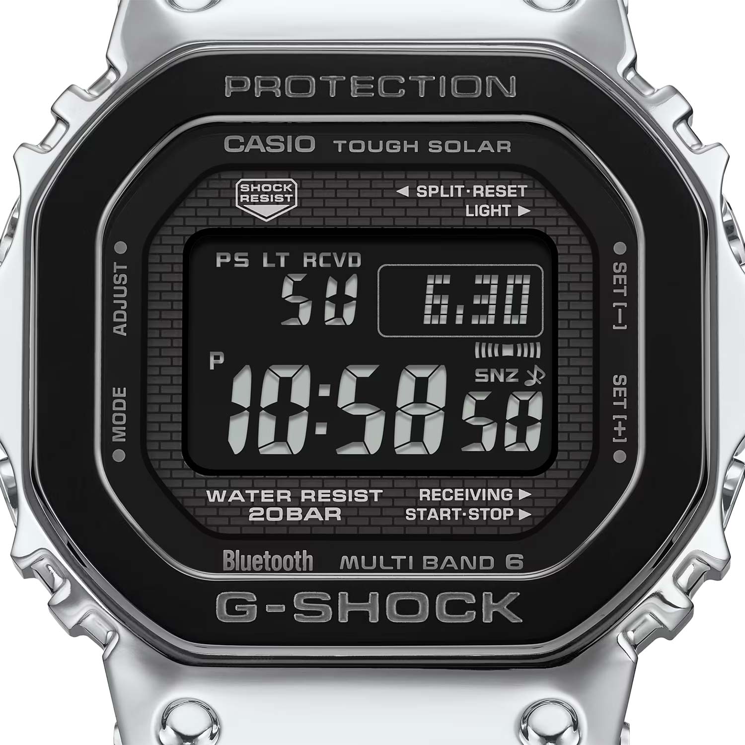 Мужские кварцевые наручные часы с цифровым отображением времени. Серия G-Shock. Данная модель собирается только в Японии на производстве Casio в Ямагата. Ударопрочная конструкция защищает механизм часов от деформации при ударах. Модуль часов снабжен элементами из материала alphaGEL, который еще лучше защищает механизм от сотрясения и вибрации. АlphaGEL представляет собой гибкую силиконовую прослойку, оказывающую амортизирующий эффект. Питание от солнечной энергии (технология Tough Solar) - источником питания служит светочувствительная панель и аккумулятор, заряжаемый при попадании солнечного света на циферблат часов. Индикатор уровня заряда батареи. Функция автоматического сохранения энергии. Время работы аккумулятора без подзарядки до 10 месяцев, при включенной функции сохранения энергии до 22 месяцев. Дисплей подсвечивается светодиодом, настраиваемая продолжительность свечения 2 или 4 секунды, послесвечение. Технология Multi band 6 позволяет осуществлять автоматическую синхронизацию и коррекцию времени с помощью радиосигнала на территории почти всей Европы, США, Японии и Китая. Часы оснащены беспроводной технологией Bluetooth® со сверхнизким потреблением энергии для синхронизации со смартфоном. При подключении к смартфону часы автоматически корректируют текущее время, в том числе переход на зимнее/летнее время, копируют настройки мирового времени более чем для 300 городов и получают доступ к ряду полезных функций. Память журнала полетов (Flight Log Memory) - нажатием кнопки фиксируется время и положение на карте приложения. Мировое время – 39 городов (39 часовых поясов), всемирное координированное время (UTC). Возможность выбора до 5 городов в качестве избранных в WorldTime. Автоматический переход на зимнее и летнее время, возможность включения/отключения данной функции. 12-ти и 24-х часовой формат отображения времени. Секундомер с точностью показаний 1/100 секунды (первые 60 минут) и 1 секунда (через 60 минут) и временем измерения 24 часа. Режимы измерения: прошедшее время, промежуточное время, два финишных результата. Таймер обратного отсчета от 1 секунды до 24 часов. Функция включения/отключения звука кнопок. 5 ежедневных будильников, один с функцией повтора сигнала Snooze, почасовой сигнал времени. Функция поиска телефона. Автоматический календарь до 2099 г, возможность отображения дней недели на 6-ти языках. Устойчивое к мелким механическим повреждениям минеральное стекло. Прямоугольный корпус из нержавеющей стали с чёрным IP покрытием на безеле. Размеры корпуса 49,3мм на 43,2 мм, толщина 13 мм. Завинчивающаяся задняя крышка с DLC-покрытием (Diamond Like Coating ) для обеспечения устойчивости к износу. Стальной браслет с тройной раскладывающейся застежкой. Водонепроницаемость WR 200 (часы подходят для плавания с маской, трубкой, обычного плавания). Вес около 167 г