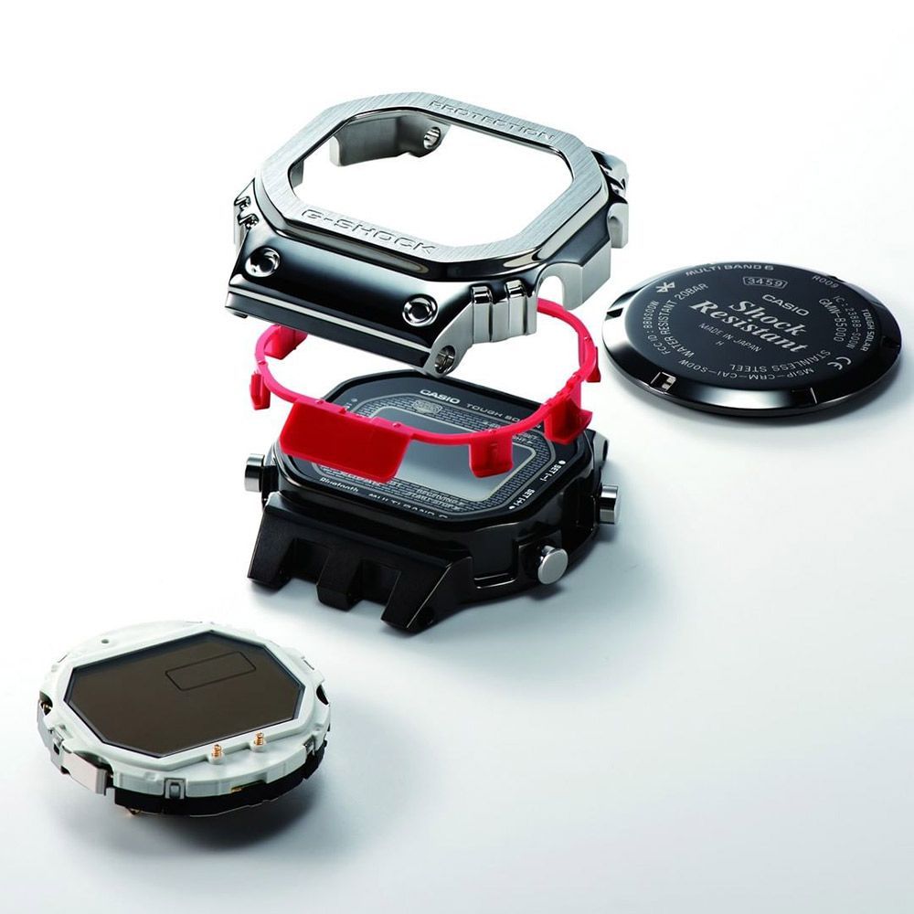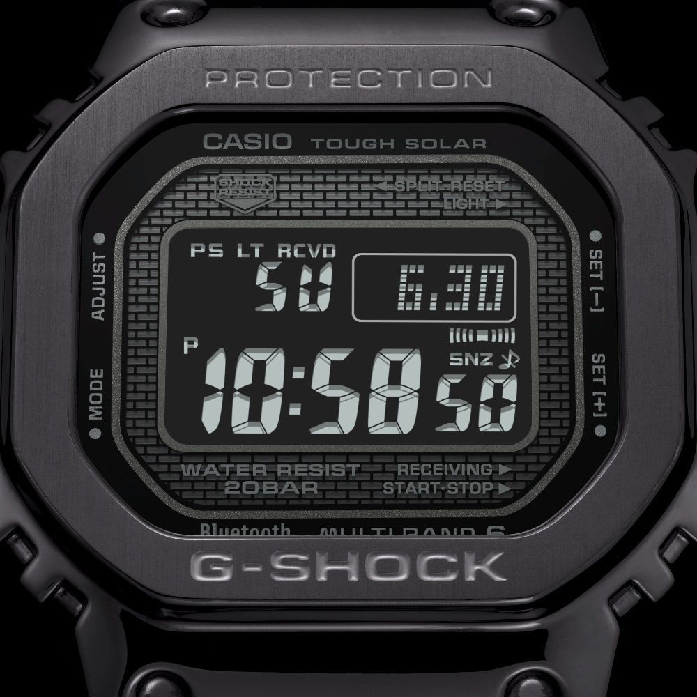 Мужские кварцевые электронные наручные часы. Серия G-Shock Standard Digital. Ударопрочная конструкция защищает механизм часов от деформации при ударах. Устойчивость к воздействию вибрации - модуль часов снабжен элементами из материала alphaGEL, который еще лучше защищает часы от сотрясения и вибрации (alphaGEL представляет собой гибкую силиконовую прослойку, оказывающую амортизирующий эффект). Питание часов от солнечной энергии Tough Solar - в часах источником питания служит светочувствительная панель и аккумулятор, подзаряжаемый от солнечного света, энергия генерируется всякий раз, когда на лицевую поверхность часов попадает свет. Дисплей подсвечивается ярким светодиодом. Технология Multi band 6 позволяет осуществлять автоматическую синхронизацию и коррекцию времени с помощью радиосигнала на территории почти всей Европы, США, Японии и Китая. Синхронизация со смартфоном по Bluetooth® через приложение SHOCK-Connected G. При подключении к смартфону часы корректируют текущее время (до 4 раз в день). Память журнала полетов - нажатием кнопки фиксируется время и положение на карте приложения. Индикатор уровня заряда батареи (до 7 уровней). Функция поиска телефона. Отображение дней недели на шести языках, включая русский. Мировое время – 39 городов (39 часовых поясов), всемирное координированное время (UTC). Возможность выбора до 5 городов в качестве избранных в WorldTime. Автоматический переход на зимнее и летнее время, возможность включения/отключения данной функции. 12-ти и 24-х часовой формат времени. Функция секундомера- 1/100 с - 24 часа, прошедшее время измеряется с точностью в 1/100 секунды, пределы измерения 24 ч. Таймер обратного отсчета от 1 мин до 24 ч. Функция включения/отключения звука кнопок. 5 ежедневных будильников с функцией повтора сигнала. Автоматический календарь. Корпус из нержавеющей стали. Завинчивающаяся задняя крышка с DLC-покрытием (Diamond Like Coating - углеродное покрытие с алмазными свойствами устойчиво к сильнейшим повреждениям., обеспечивает повышенное сопротивление воздействию электричества и химических веществ). Стальной браслет.