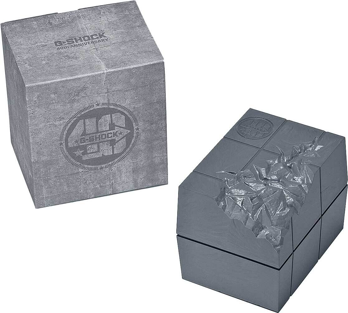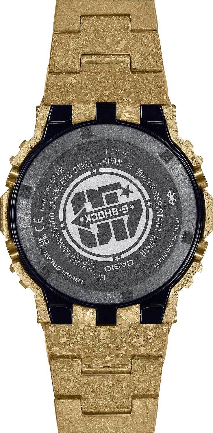 Мужские кварцевые электронные наручные часы. Серия G-Shock 40th Anniversary Recrystallized limited. Лимитированная серия (выпущена ограниченным тиражом). Модель посвящена 40-летию коллекции G-Shock. Ударопрочная конструкция защищает механизм часов от деформации при ударах и вибрации. Модуль часов снабжен элементами из материала alphaGEL, который еще лучше защищает механизм от сотрясения и вибрации. АlphaGEL представляет собой гибкую силиконовую прослойку, оказывающую амортизирующий эффект. Питание от солнечной энергии (технология Tough Solar) - источником питания служит светочувствительная панель и аккумулятор, заряжаемый при попадании солнечного света на циферблат часов. Индикатор уровня заряда батареи. Функция энергосбережения (в темноте дисплей гаснет для экономии энергии). Время работы аккумулятора без подзарядки до 10 месяцев, при включенной функции сохранения энергии до 22 месяцев. Дисплей подсвечивается светодиодом, настраиваемая продолжительность свечения 2 или 4 с, послесвечение. Технология Multi band 6 позволяет осуществлять автоматическую синхронизацию и коррекцию времени с помощью радиосигнала на территории почти всей Европы, США, Японии и Китая. Часы оснащены беспроводной технологией Bluetooth® со сверхнизким потреблением энергии для синхронизации со смартфоном. При подключении к смартфону через приложение SHOCK-Connected G часы автоматически корректируют текущее время (до 4 раз в день) и получают доступ к ряду полезных функций. Память журнала полетов - нажатием кнопки фиксируется время и положение на карте приложения. Мировое время – 39 городов (39 часовых поясов), всемирное координированное время (UTC). Возможность выбора до 5 городов в качестве избранных в WorldTime. Автоматический переход на зимнее и летнее время, возможность включения/отключения данной функции. Переключение между домашним и мировым временем. 12-ти и 24-х часовой формат отображения времени. Секундомер с точностью измерения 1/100 секунды (первые 60 минут) и 1 секунда (через 60 минут) и временем измерения 24 ч. Режимы измерения: прошедшее время, промежуточное время, два финишных результата. Таймер обратного отсчета от 1 с до 24 ч. Функция включения/отключения звука кнопок. 5 ежедневных будильников, один с функцией повтора сигнала Snooze, почасовой сигнал времени. Функция поиска телефона. Автоматический календарь до 2099 г, возможность отображения дней недели на 6-ти языках. Устойчивое к мелким механическим повреждениям минеральное стекло. Прямоугольный цельнометаллический корпус из нержавеющей стали с ионным покрытием цвета жёлтого золота. Размеры корпуса 49,3мм на 43,2 мм , толщина 13 мм. Завинчивающаяся задняя крышка чёрного цвета с DLC-покрытием (Diamond Like Coating ) для обеспечения устойчивости к износу украшена логотипом, созданным граффити-художником Эриком Хейзом в ознаменование 40-летия G-SHOCK. Стальной браслет с ионным покрытием цвета жёлтого золота. Водонепроницаемость WR 200 (плавание и ныряние без акваланга). Вес около 167 г. Часы поставляются в оригинальной упаковке.