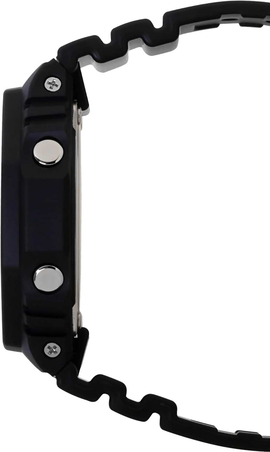 Мужские кварцевые аналого-цифровые часы на солнечной батарее. Серия G-Shock. Стильная модель в матовом корпусе черного цвета с яркими деталями циферблата. Противоударный пластиковый корпус с углеродными волокнами (структура Carbon Core Guard) защищает внутренний модуль часов от повреждений и деформаций при ударах и вибрации. Питание от солнечной энергии (технология Tough Solar) — источником питания служит светочувствительная панель и аккумулятор, заряжаемый при попадании солнечных лучей на циферблат часов. Индикатор уровня заряда батареи. Функция автоматического сохранения энергии. Время работы аккумулятора без подзарядки около 7 месяцев, при включенной функции сохранения энергии около 18 месяцев. Часы оснащены беспроводной технологией Bluetooth® со сверхнизким потреблением энергии для синхронизации со смартфоном. При подключении к смартфону часы автоматически корректируют текущее время, в том числе переход на зимнее/летнее время, копируют настройки мирового времени более чем для 300 городов и получают доступ к ряду полезных функций. Двойная светодиодная подсветка (циферблата и ЖК-дисплея) с функцией послесвечения, настройка продолжительности подсветки 1,5 или 3 с. Секундомер с точностью измерения 1/100 секунды (в течение первого часа), 1 секунда (через 1 час) и временем измерения 24ч. Режимы измерения: прошедшее время, время прохождения части и круга дистанции. Таймер обратного отсчета от 1 секунды до 60 минут. Сигнал оповещения об окончании обратного отсчета звучит в течение 10 секунд. 5 ежедневных будильников, ежечасный сигнал. Мировое время - 38 городов (38 часовых поясов), всемирное координированное время (UTC), автоматический переход на зимнее и летнее время, возможность включения/отключения данной функции, переключение между домашним и мировым временем. 12-ти и 24-х часовой формат отображения времени. Автоматический календарь до 2099 г, отображение дней недели на шести языках. Включение/выключение звука кнопок. Функция перемещения стрелок для удобного просмотра информации на цифровом экране. Функция поиска телефона. Усиленный углеродными волокнами пластиковый корпус чёрного цвета. Размер корпуса 48,5 мм на 45,4 мм, толщина 11,9 мм. Центральные часовая и минутная стрелки. Чёрный циферблат с часовыми метками в виде штрихов. Стрелки и метки с люминесцентным покрытием, которое светится в темноте после непродолжительного воздействия света. Минеральное стекло устойчивое к мелким механическим повреждениям. Ремешок из полимерного пластика чёрного цвета, стандартная застёжка Buckle. Водонепроницаемость 200WR (плавание и погружение без акваланга). Вес около 52 г.