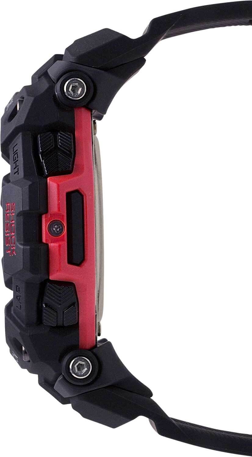 Мужские кварцевые электронные наручные часы. Серия Casio G-Shock G-Squad. Противоударный корпус защищает механизм часов от ударов и вибрации. Часы оснащены беспроводной технологией Bluetooth® со сверхнизким потреблением энергии для синхронизации со смартфоном. При подключении к смартфону часы корректируют текущее время, дату и мировое время и получают доступ к ряду полезных функций. Светодиодная автоматическая подсветка с выбираемой длительностью свечения 1,5 или 3 секунды. Функция автоподсветки - при недостаточной освещенности поворот руки включит подсветку часов. Индикация входящих вызовов и сообщений. Функция поиска телефона. Функция виброуведомлений. Шагомер (подсчет шагов с помощью 3-осевого акселерометра) - измеряет и отображает от 0 до 99 999 шагов. Акселерометр - датчик движения реагирует на ускорение, а затем отображает полученные данные на экране дисплея. Кроме того, датчик поддерживает функцию автоматического поворота часов, гарантируя, что изображение на экране всегда будет иметь нужную ориентацию. Журнал тренировки: до 100 записей, каждая из которых содержит до 140 результатов тренировки (прошедшее время, пройденная дистанция, скорость, темп, количество сожженных калорий). Анализ и планировщик тренировок. Авиарежим - часы переключаются в режим оффлайн нажатием кнопки. С помощью этой функции можно отключить радио- и GPS-приемник на время перелета. Секундомер с точностью измерения 1/100 секунды и временем измерения 100 часов. Режимы измерения: прошедшее время, промежуточное время. Память на 100 кругов. Таймер обратного отсчета от 1с до 1ч с автоповтором. Настройка времени работы 5 последовательных таймеров. Автоматический календарь до 2099 года. 12/24х часовой формат отображения времени. 4 ежедневных будильника, один с функцией повтора сигнала (Snooze). Мировчое время - 38 городов (38 часовых поясов), всемирное координированное время (UTC), включение/отключение летнего времени. Включение/выключение звука кнопок. Круглый корпус из полимерного пластика чёрного цвета. Размеры корпуса 49,3 мм на 58,2мм, толщина 17мм. Алюминиевый безель. Устойчивое к мелким механическим повреждениям минеральное стекло. Чёрный пластиковый ремешок с классической застёжкой buckle. Примерный срок службы батарейки 2 года. Водозащита 200WR (плавание и погружение без акваланга). Вес около 69 г.