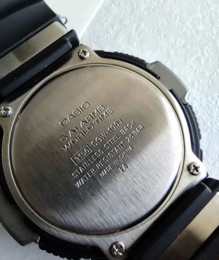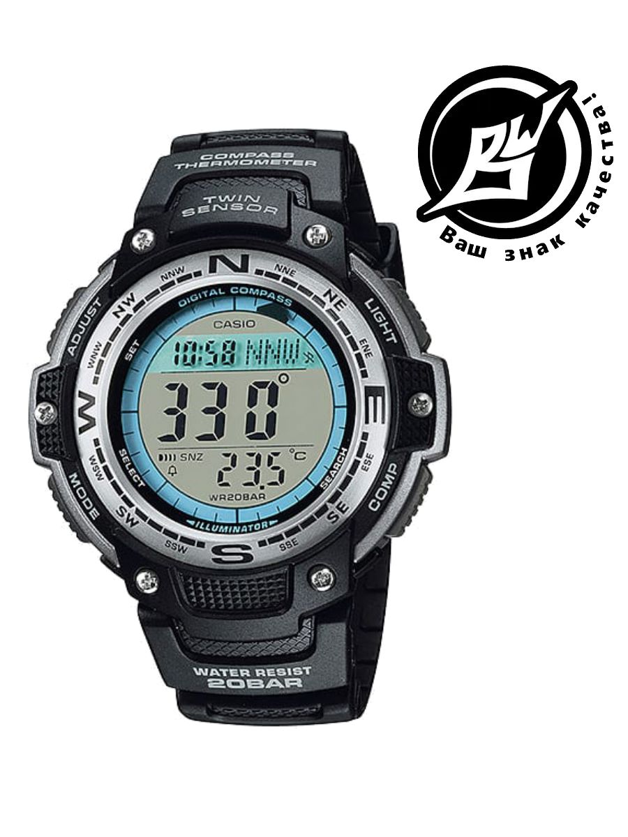 Мужские кварцевые наручные часы c цифровым отображением времени. Коллекция Sports Gear. Электролюминесцентная подсветка освещает весь циферблат, послесвечение. Модуль часов рассчитан на работу при низких температурах (до (-10 °C). Встроенный термометр - датчик измеряет температуру окружающего воздуха вокруг часов и отображает ее на экране в градусах °C (от -10°C до +60°C). Встроенный цифровой компас определяет северный магнитный полюс. Мировое время - 48 городов (29 часовых поясов). Секундомер с точностью показаний 1/100 секунды и временем измерения 1 час. Режимы измерений отдельные отрезки времени, время с промежуточным результатом, два финишных результата. Таймер обратного отсчёта от 1 мин и до 24 часов с функцией автоповтора. 5 ежедневных будильников, один с функцией повтора сигнала будильника Snooze, сигнал начала часа. 12-ти и 24-х часовой формат отображения времени. Функция отключения/включения звука кнопок. Автоматический календарь до 2099г. Круглый корпус из полимерного пластика чёрного цвета, алюминиевый безель. Размеры корпуса 47,6 мм на 51,5мм, толщина 13,2мм. Минеральное стекло устойчивое к мелким механическим повреждениям. Чёрный пластиковый ремешок с классической застёжкой buckle. Батарея рассчитана на 3 года. Водонепроницаемость 200WR (часы подходят для плавания с маской, трубкой, обычного плавания). Вес около 55 г.