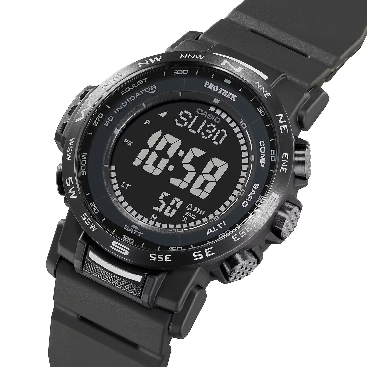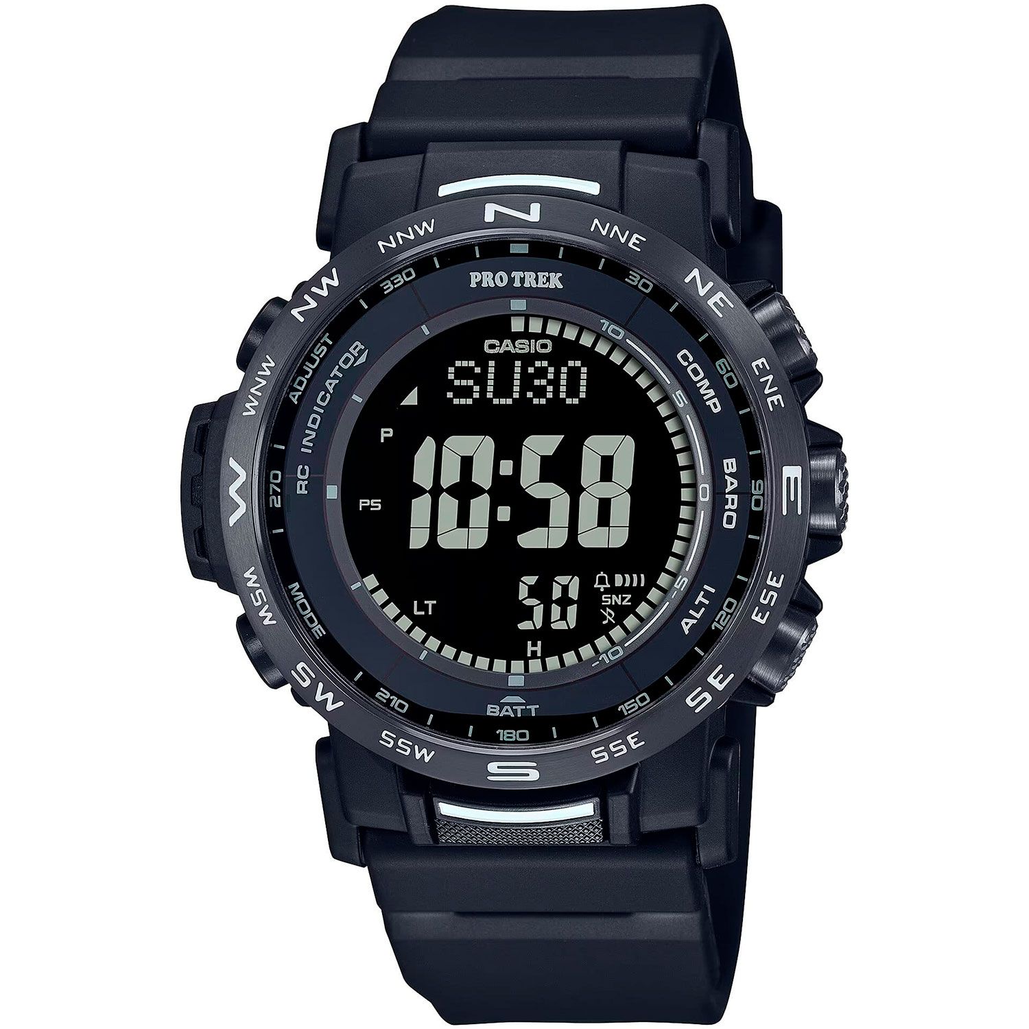 Мужские кварцевые электронные наручные часы на солнечной батарее. Запас хода при полной зарядке 6 месяцев. Автоматическая светодиодная подсветка - при недостаточном освещении поворот кисти включит яркую подсветку. Часы устойчивы к низким температурам (-10 градусов по Цельсию). Технология Multiband 6 - коррекция текущего времени радиосигналом почти по всему миру: Англия, Германия, США, Япония и Китай. Встроенный цифровой компас определяет северный магнитный полюс. Высотомер - встроенный датчик давления определяет изменения в атмосферном давлении и преобразовывает полученные результаты в абсолютную высоту до 10 000 м. График набора высоты. Память данных высотомера. Данные о восходе/закате солнца. Барометр (260 / 1.100 hPa) - специальный датчик измеряет давление воздуха (диапазон измерений составляет 260 / 1100 гПа, 1 гПа = 0,75 мм рт. ст. или 1 мм рт. ст. = 1,333 гПа) и отображает измеренное значение на экране в виде символа. Термометр (-10°C / +60°C) - датчик измеряет температуру окружающего воздуха вокруг часов и отображает ее на экране в градусах °C (-10°C /+60°C).. Функция мирового времени: 31 часовая зона (48 городов). Секундомер с точностью показаний 1/10 секунды и максимальным временем измерения 100 часов. Таймер на 24 часа. 5 ежедневных будильников (4 без повтора сигнала, 1 с повтором сигнала); сигнал