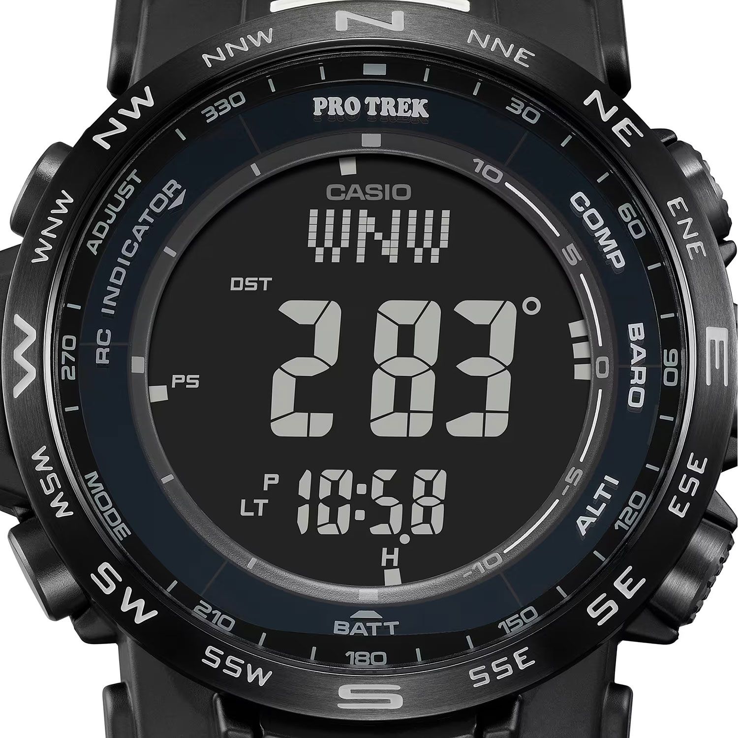 начала часа Включение/выключение звука кнопок. Автоматический календарь до 2099 года. 12/24-часовое отображение времени. Индикатор уровня заряда батарейки. Черный ЖК дисплей. Корпус выполнен из полимерного материала и нержавеющей стали. Размер корпуса составляет 51,2 x 44,6 x 13 мм. Черный ремешок из полимерного пластика, стандартная застежка. Минеральное стекло устойчивое к мелким механическим повреждениям. Водостойкость WR 100 (плавание без погружения). Вес примерно 45 г.