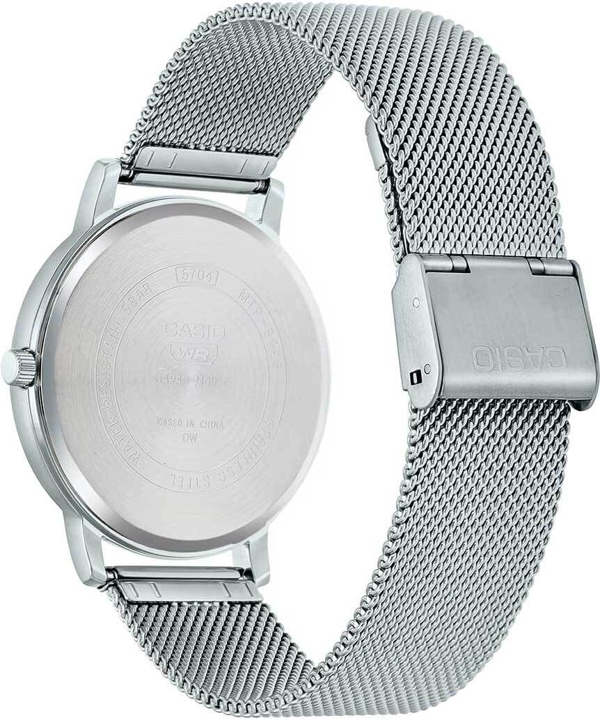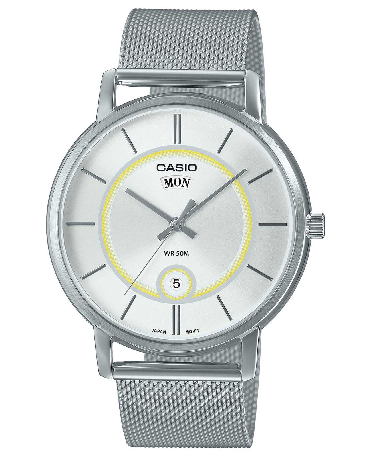Японские мужские наручные часы Casio Collection MTP-B120M-7A, кварцевый механизм с высокой точностью. Класс водозащиты: 50 метров, позволит защитить корпус от случайных брызг или капель дождя. Корпус часов изготовлен из стали, цвета. Все часы бренда Casio в каталоге KronosTime — подлинные, о чем свидетельствуют сертификаты производителя. Коллекция Collection Страна Япония Механизм Кварцевые Источник энергии От батарейки Стекло Минеральное Материал корпуса Нержавеющая сталь Материал корпуса Металл Водозащита 50 м. (WR 50) Материал браслета Нержавеющая сталь Подсветка Люминесцентная Артикул/модель MTP-B120M-7A Толщина корпуса (мм) 8,3 Длина корпуса (мм) 48 Вес (гр) 75 Пряжка Раскладная застежка с фиксатором