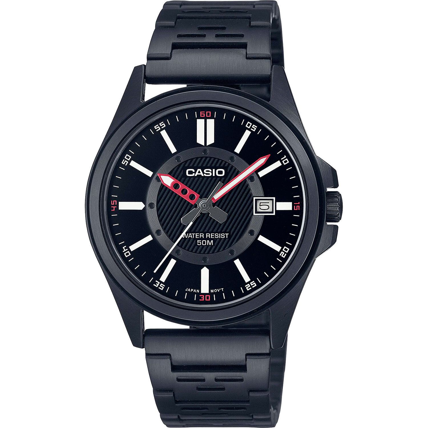 Мужские кварцевые часы. Центральные часовая, минутная и секундная стрелки. Апертура даты в позиции 3 часов. Черный циферблат. Круглый корпус выполнен из нержавеющей стали с черным IP покрытием. Диаметр корпуса составляет 39,7 мм, толщина 9,8 мм. Заводная головка с защитой. Стальной браслет с покрытием, раскладывающаяся застежка. Прочное минеральное стекло устойчивое к мелким механическим повреждениям. Водостойкость WR 50 (мытье рук, дождь). Вес примерно 104 гр.