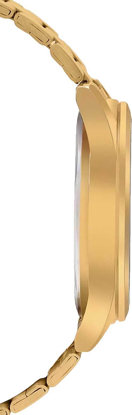 Круглый корпус выполнен из нержавеющей стали с IP покрытием цвета желтого золота.
