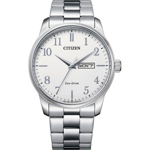 Кварцевые часы. Система Eco-Drive не требующая замены батарейки. Водостойкость WR 100. Центральные часовая, минутная и секундная стелки. Индикация даты и дня недели. Циферблат с часовыми индексами в виде штрихов и цифр. Корпус выполнен из нержавеющей стали. Диаметр корпуса 42 мм, толщина 10 мм. Устойчивое к возникновению мелких механических повреждений минеральное стекло. Браслет выполнен из нержавеющей стали.