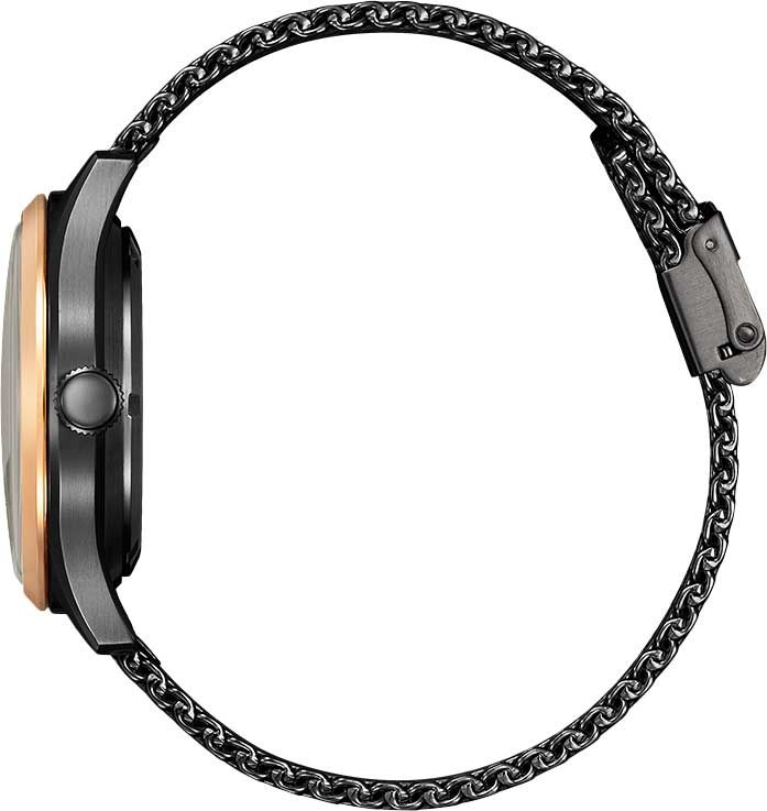Мужские аналоговые механические часы с автоподзаводом. Коллекция Automatic C7. Основное достоинство часов с автоподзаводом состоит в том, что их не надо ежедневно заводить, т. к. в таких часах пружина заводного барабана получает энергию от вращающегося эксцентрика (ротора), который приходит в движение при любом изменении положения механизма. Если носить такие часы каждый день, подводить их вручную не нужно. Калибр механизма Citizen 8200. В механизме 21 камень, частота 21600 полуколебаний в час. Запас хода около 40 часов. Центральные часовая, минутная и секундная стрелки золотистого цвета. Чёрный циферблат с часовыми метками в виде золотистых штрихов. Индикация даты в позиции 3 часов, индикация дня недели в позиции 12 часов. Стрелки с люминесцентным покрытием, которое светится в темноте после непродолжительного воздействия света. Круглый стальной корпус с чёрным IP покрытием. Диаметр корпуса 40.2 мм, толщина 13,1 мм. Безель с IP покрытием цвета розового золота. Минеральное стекло устойчивое к мелким механическим повреждениям. Стальной браслет миланского плетения с чёрным IP покрытием, регулируемая застежка. Ширина браслета 20 мм. Прозрачная завинчивающаяся задняя крышка. Водонепроницаемость 50WR (мытье рук, дождь).