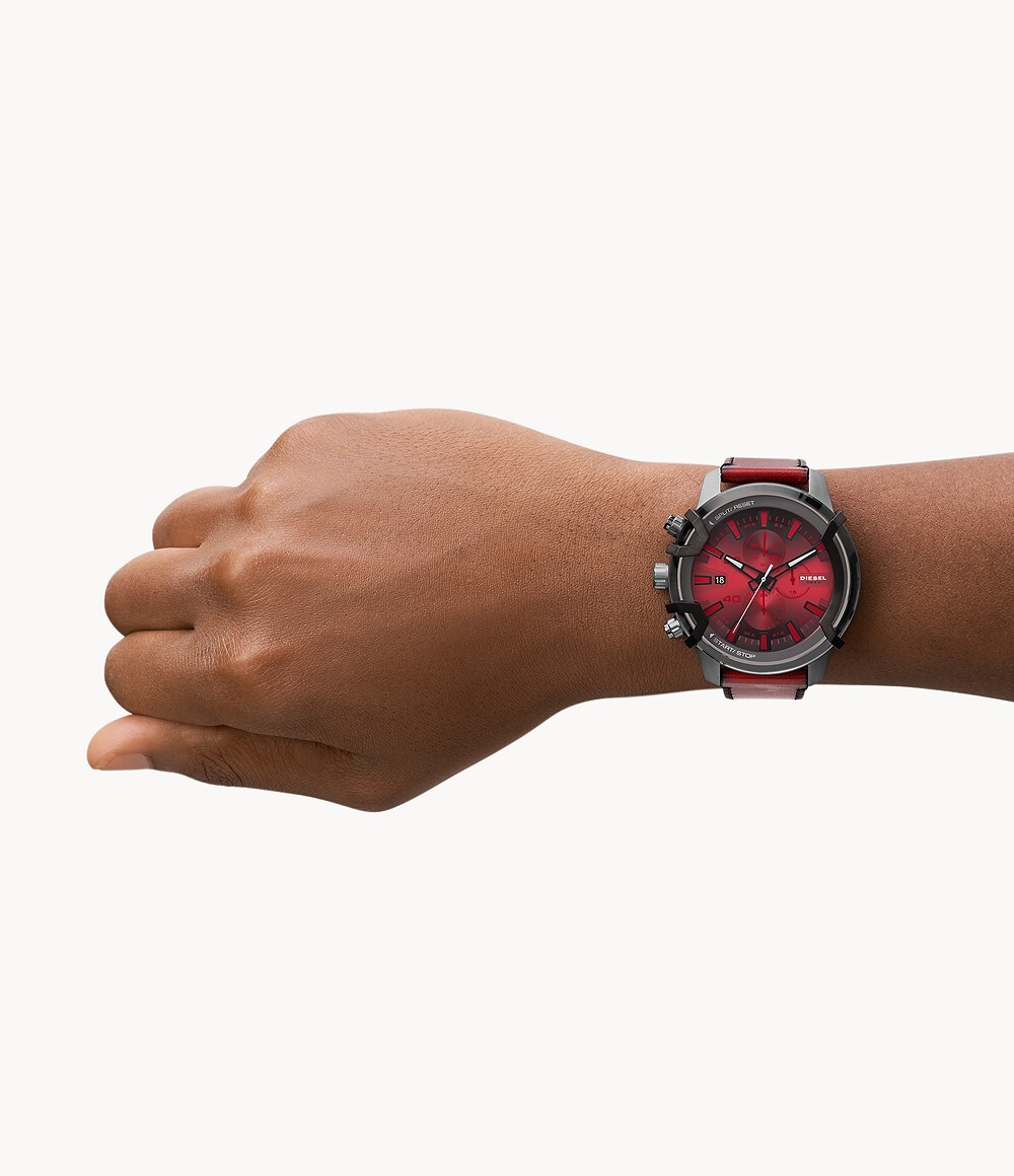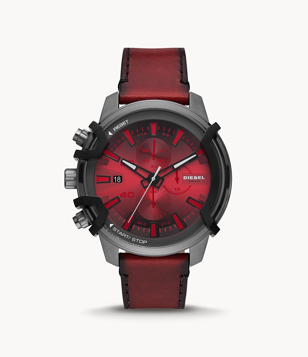 Мужские кварцевые наручные часы Diesel DZ4588. Ремешок из эко-кожи. Стальной корпус. Водонепроницаемость 5WR. Минеральное стекло. Хронограф. Люминисцентное покрытие стрелок.