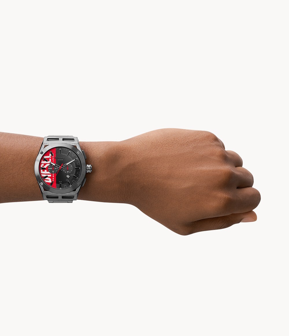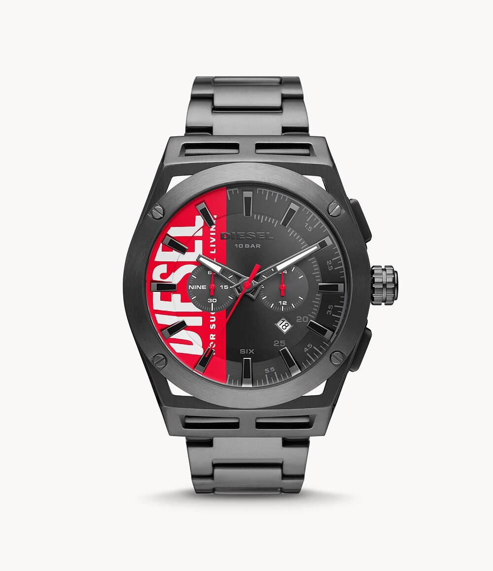 Мужские кварцевые наручные часы Diesel DZ4595. Стальной браслет. Стальной корпус. Водонепроницаемость 5WR. Минеральное стекло. Календарь. Хронограф. Люминисцентное покрытие стрелок.
