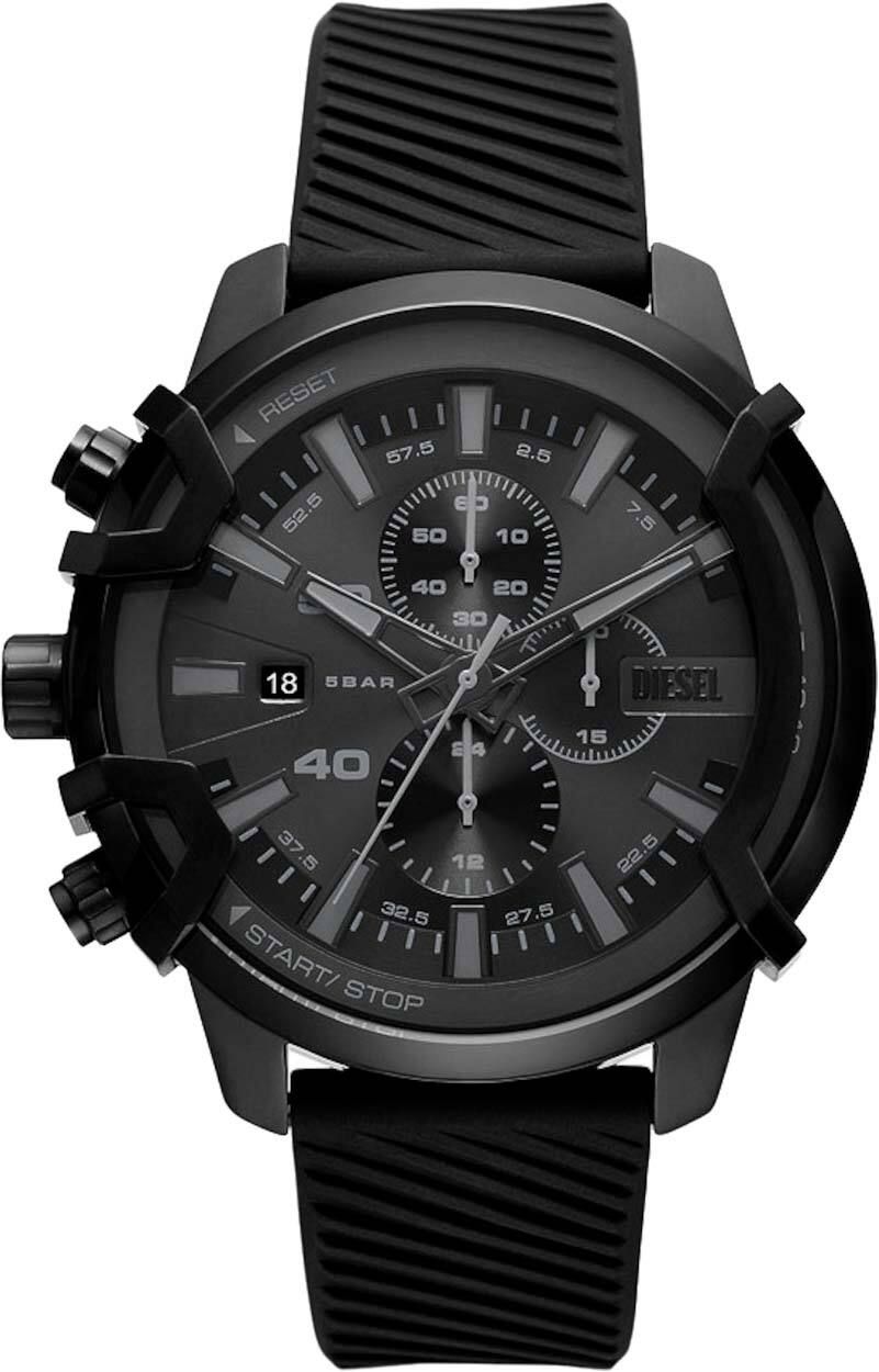 Комплект мужские часы и браслет. Коллекция Griffed. Мужские аналоговые кварцевые часы. Центральные часовая, минутная и секундная стрелки. Чёрный циферблат с часовыми метками в виде штрихов. Стрелки с люминесцентным покрытием, которое светится в темноте после непродолжительного воздействия света. 12-ти и 24-х часовой формат отображения времени вынесен на дополнительный малый циферблат в позиции 6 ч. Окошко даты в позиции 9 ч. Круглый стальной корпус с покрытием чёрного цвета. Переводная головка и кнопки управления хронографом расположены слева, что обеспечивает комфортное ношение часов на правой руке. Минеральное стекло устойчивое к мелким механическим повреждениям. Чёрный пластиковый ремешок с классической застёжкой buckle. Водостойкость WR 50 (мытьё рук, дождь). В комплекте черный текстильный браслет-шнурок с логотипом бренда из нержавеющей стали.