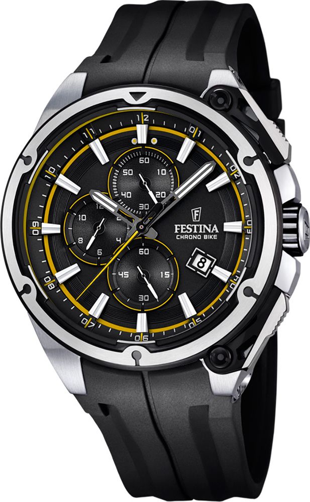 Наручные кварцевые мужские часы с хронографом. Серия Chrono Bike Tour de France. Отображение времени в формате 12/24. Круглый стальной корпус. Переводная головка с защитой. Каучуковый ремешок.