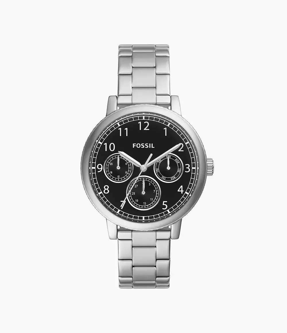Мужские кварцевые аналоговые наручные часы. Коллекция Airlift. Круглый корпус из нержавеющей стали. Фиксированный безель из нержавеющей стали. Черный циферблат с серебристыми стрелками. Арабские цифры. Фиксированный безель из нержавеющей стали. Центральные часовая, минутная и секундная стрелки. Три многофункциональных дополнительных циферблата отображают: день недели, дату и 24 часа. Устойчивое к царапинам минеральное стекло. Стальной браслет. Водостойкость WR 50.