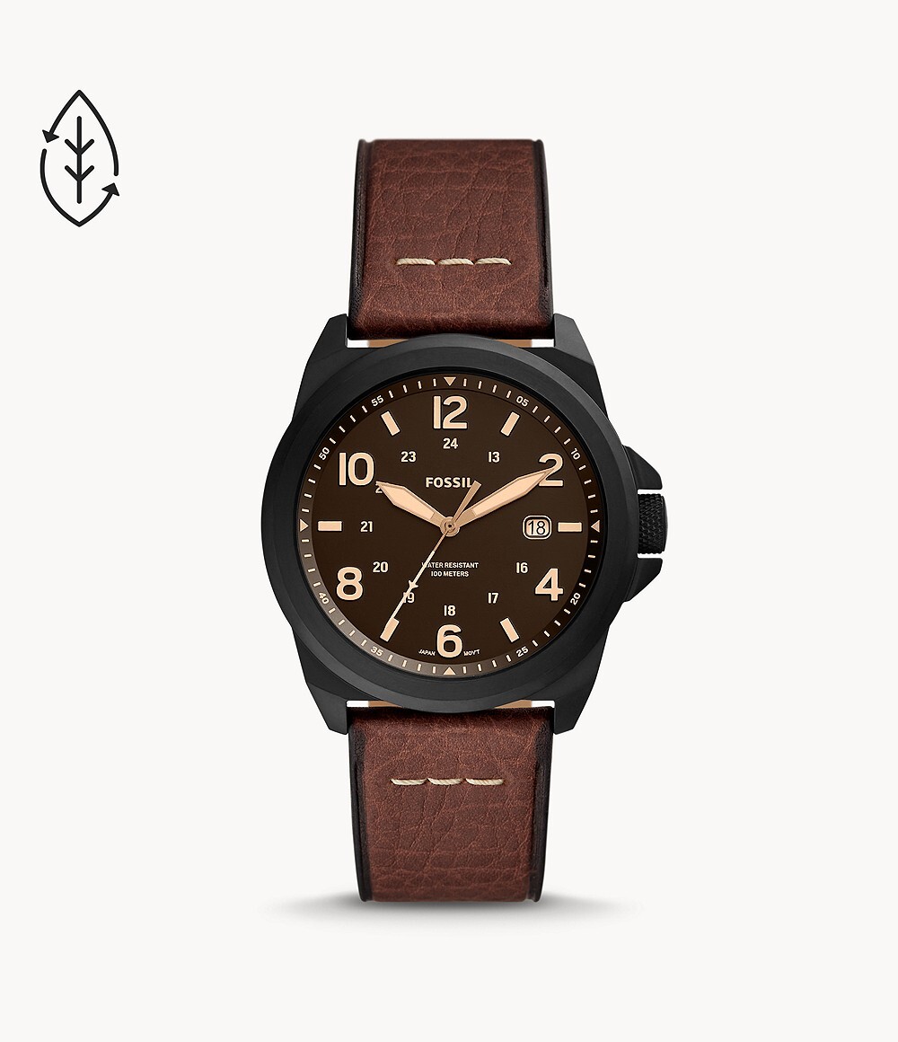 Мужские кварцевые наручные часы Fossil FS5914. Ремешок из эко-кожи. Стальной корпус. Водонепроницаемость 10WR. Минеральное стекло. Календарь. Люминисцентное покрытие стрелок.